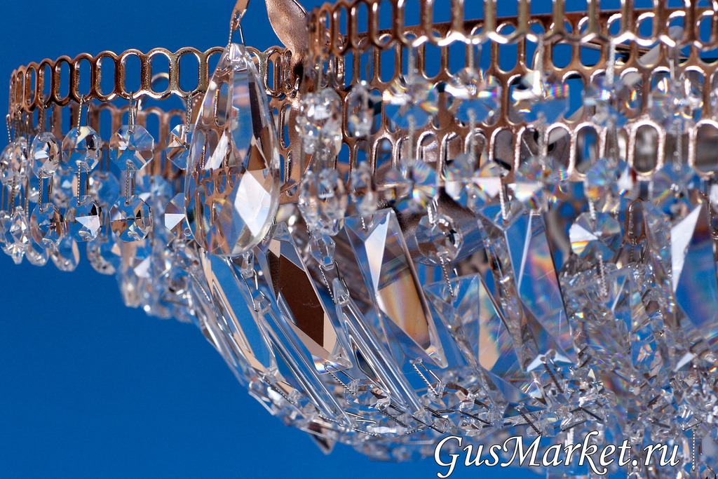 Люстра хрусталь, производство Гусь-Хрустальный. Возможно добавление цветного хрусталя. Разные виды подвесок. Поставляется в собранном виде. Крепление крючковое.