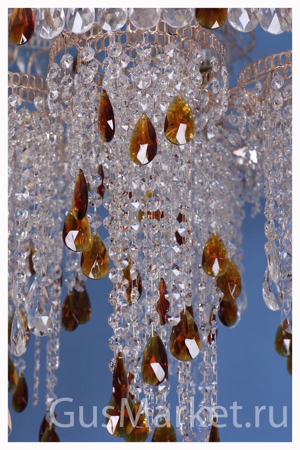 Люстра хрусталь, производство Гусь-Хрустальный. За счет добавления цветного камня вы сможете обеспечить наилучшее сочетание хрустальной люстры с интерьером вашей квартиры.