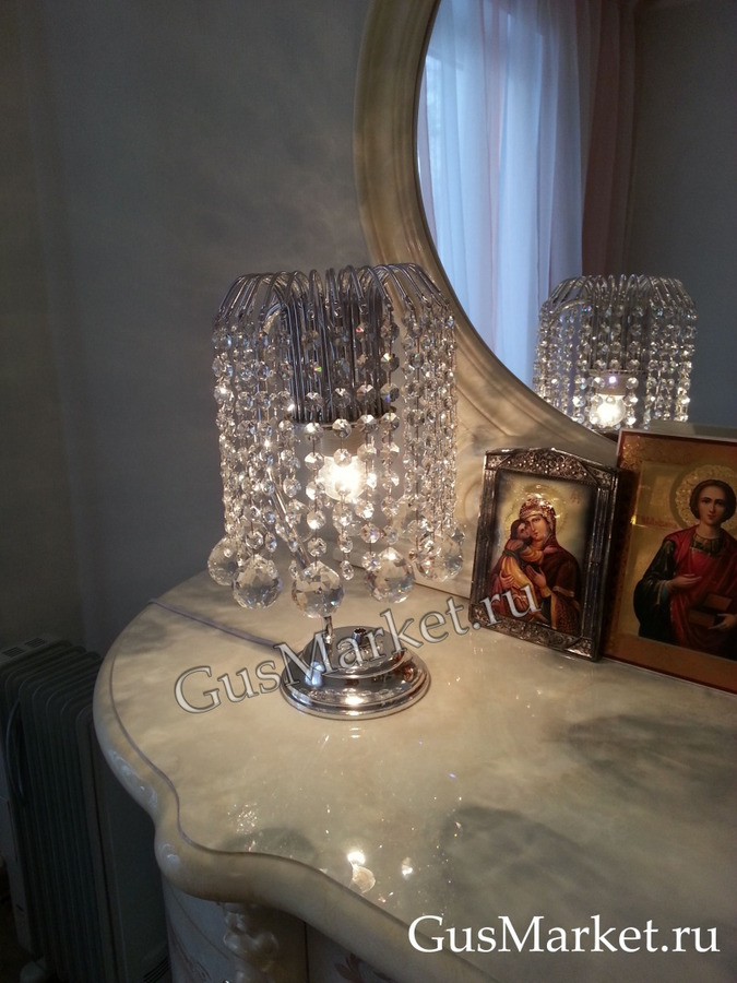 Хрустальная настольная лампа. Выключатель на проводе. Альтернатива настенному бра.