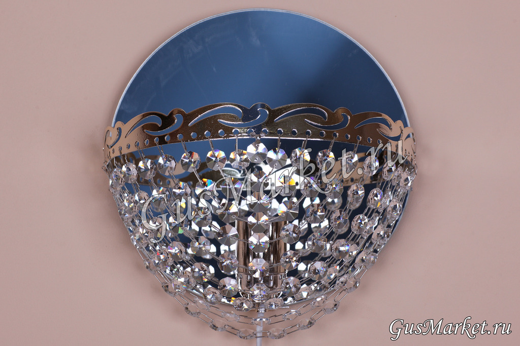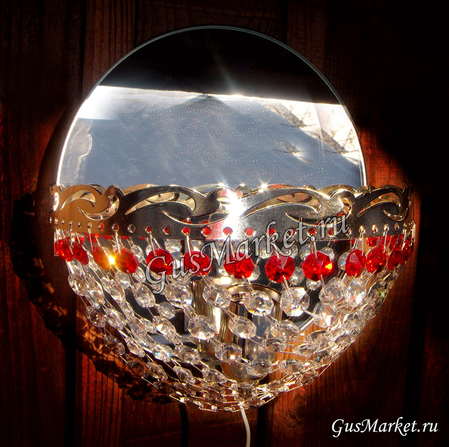 Бра производства г.Гусь-хрустальный. Поставляется в собранном виде. Крепление настенное на два самореза, располагается за зеркалом. Выключатель на проводе. Провод можно обрезать и подключить к выводу из стены.