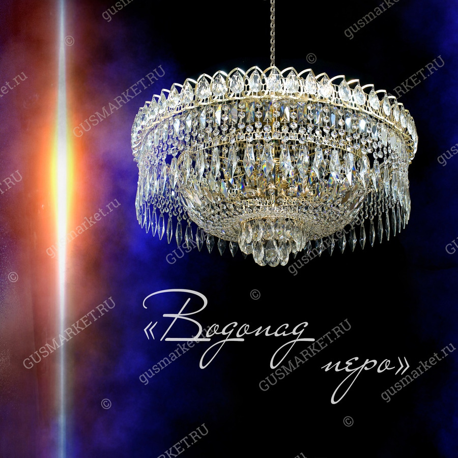 Шикарная люстра из хрусталя. Классика стиля. Дополнительно к люстре водопад добавлена юбка из хрусталиков "Перо". Люстра г. Гусь-Хрустальный. Крепление на крючок. Люстра с зеркалом.