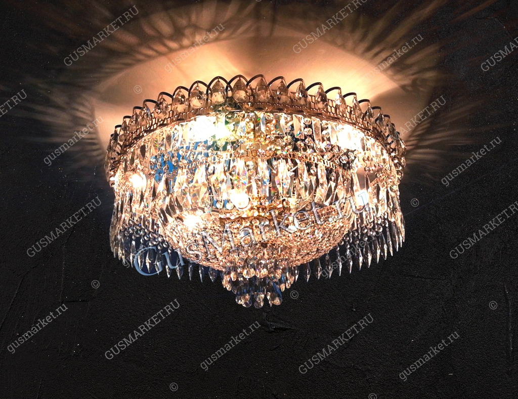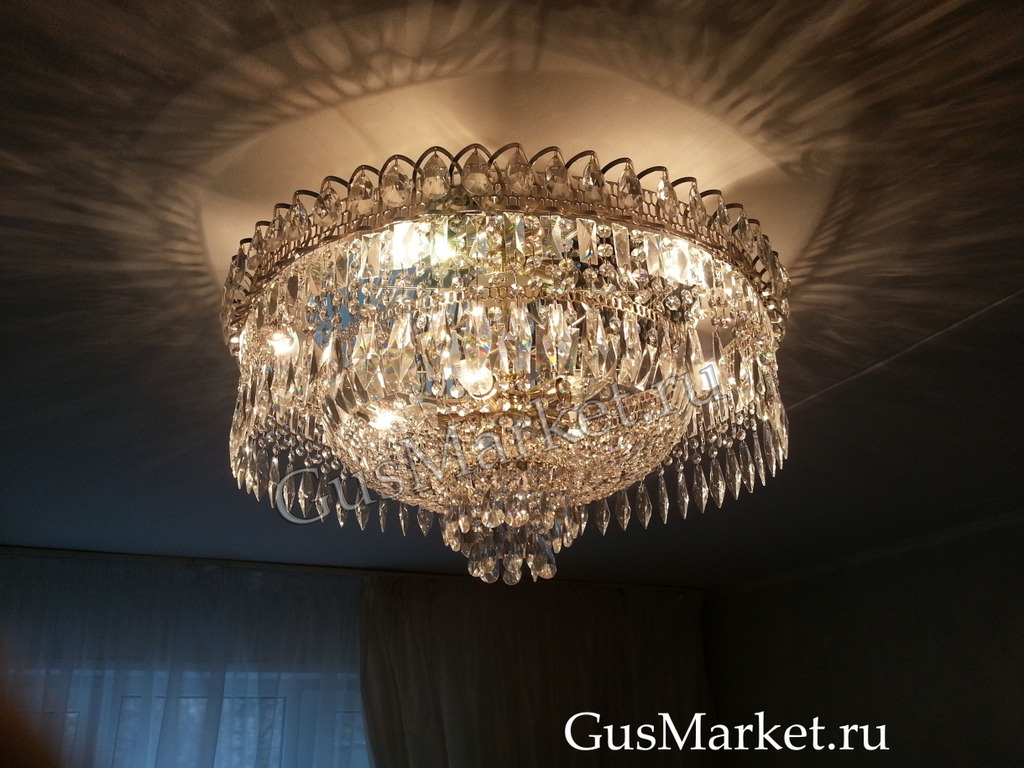 Отличная люстра, брали большую на 11ламп - освещение получилось очень ярким, лампы расположены в центре под хрустальными подвесками и с краю по кругу, смотрится богато. Арматуру взяли "серебро" - к качеству претензий нет, ничего не облетает. В центре у люстры есть зеркало (не до краев люстры), что делает игру света еще красивее. Крепление крючковое. Доставку в моск.обл. сделали очень быстро, люстра была собранная, перед оплатой ее посмотрели. Красивее смотрится с лампочками накаливания, но с энергосберегающими тоже хорошо.