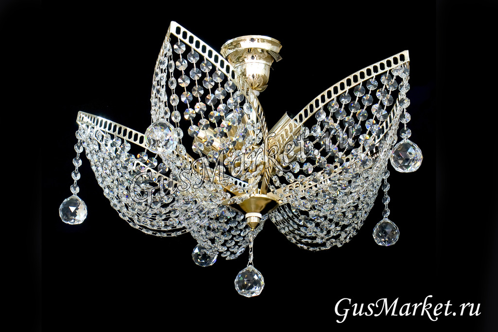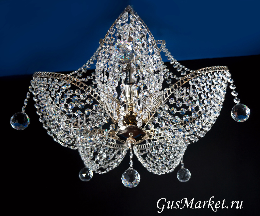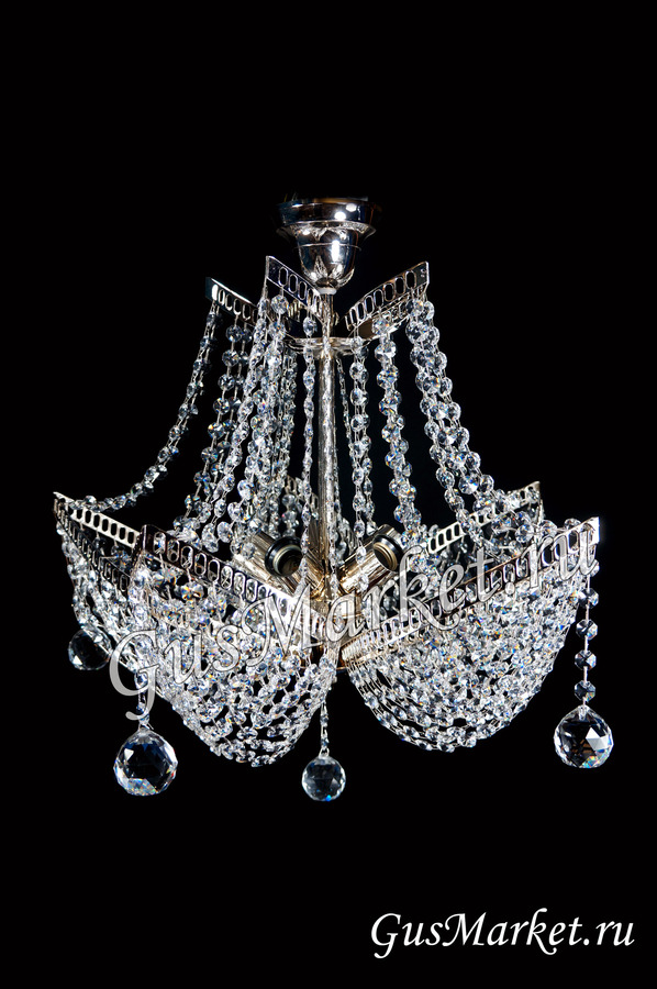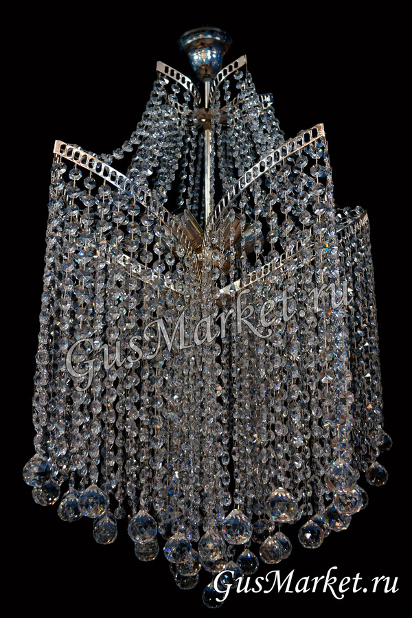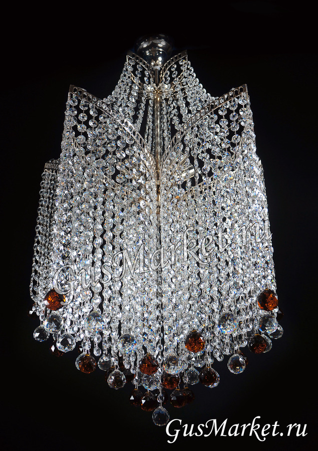 Хрустальная люстра "Каменный цветок", дополнительно украшена хрустальными шариками. Люстра д55 сделана с "короной". По желанию заказчика, высоту можно сделать большей.
