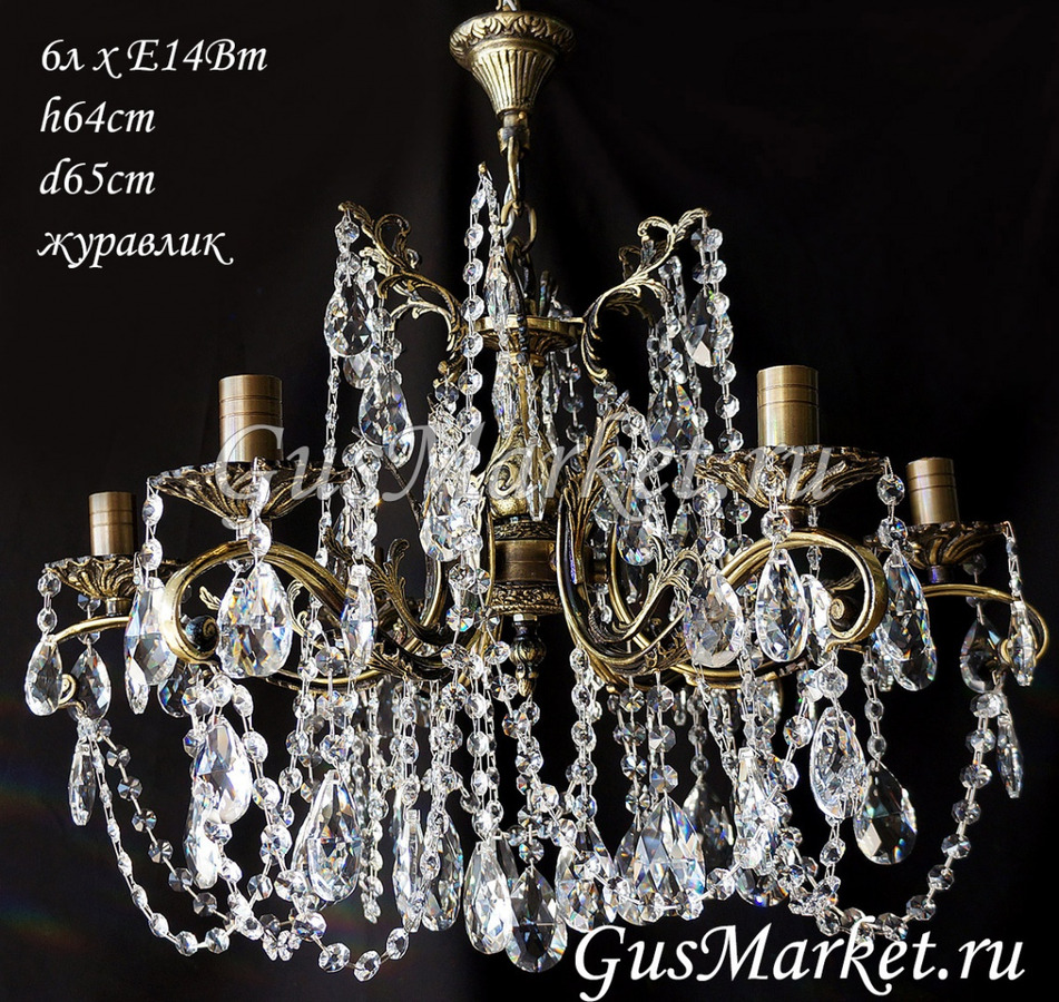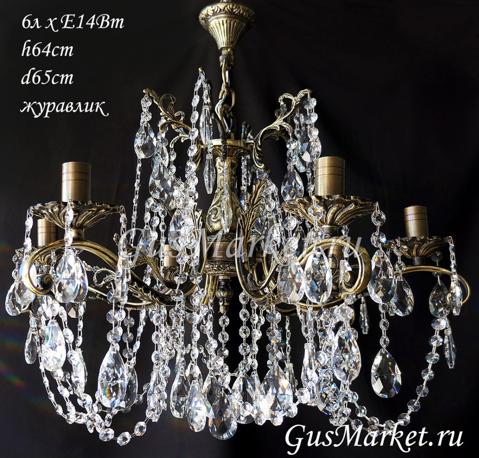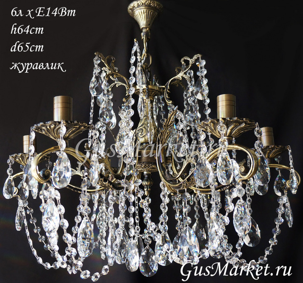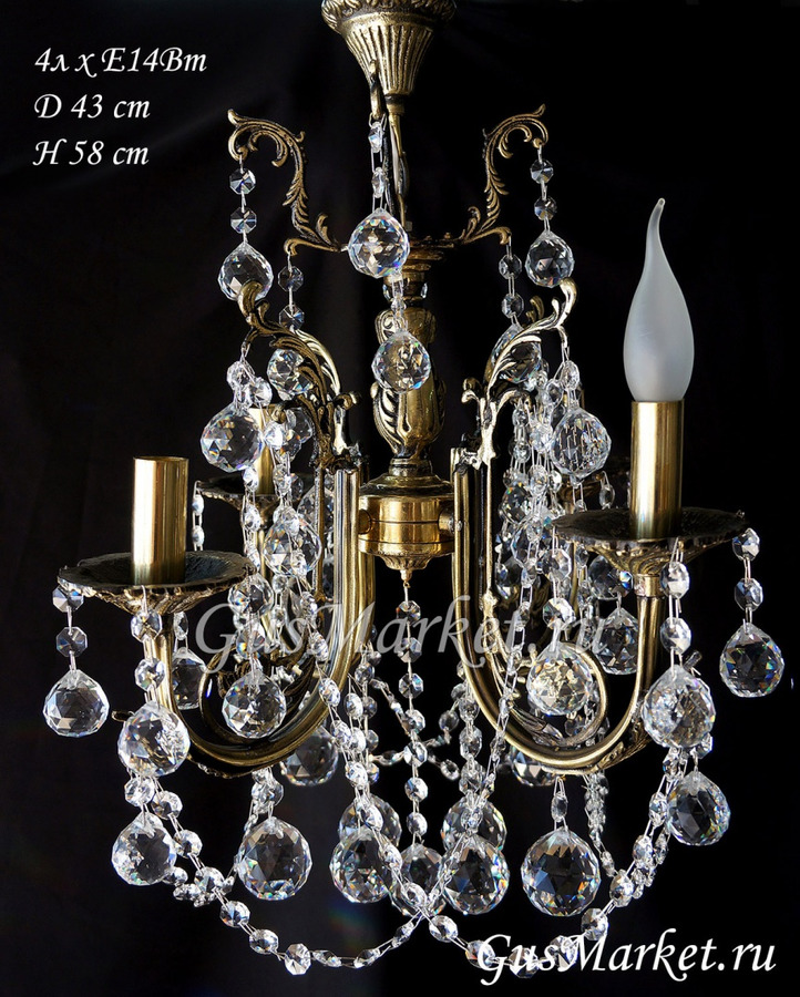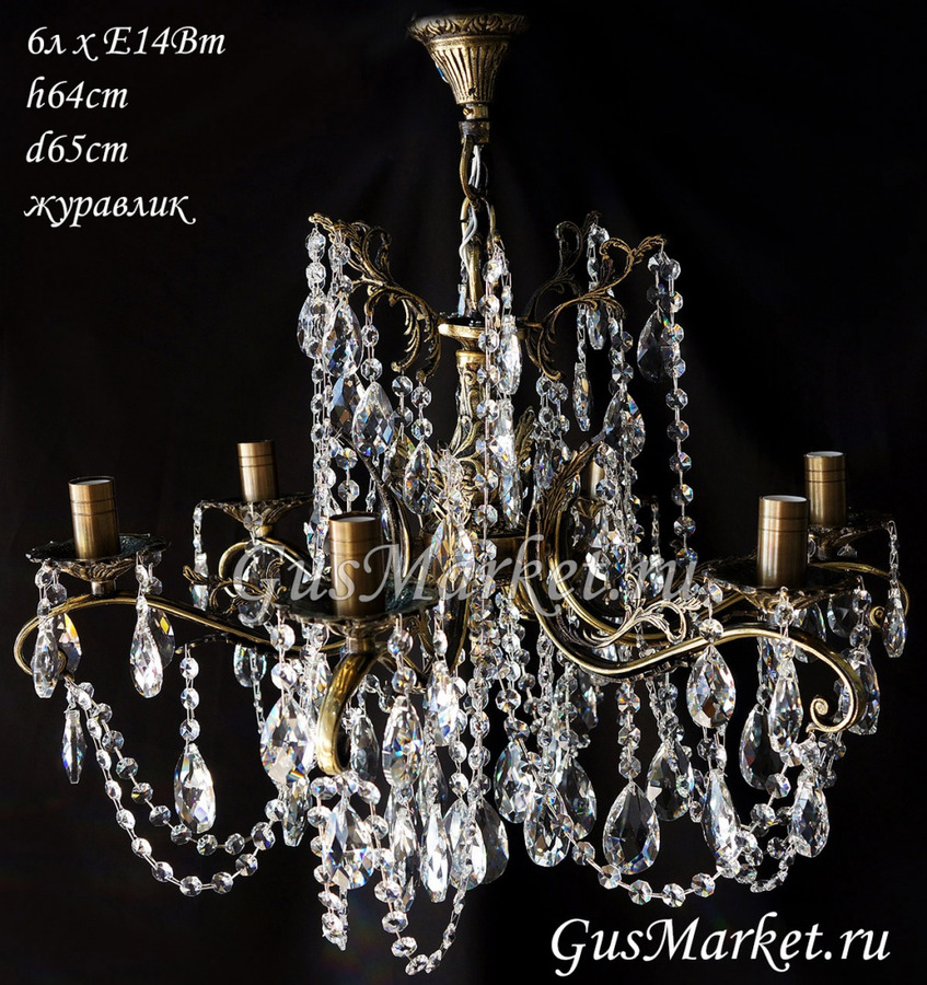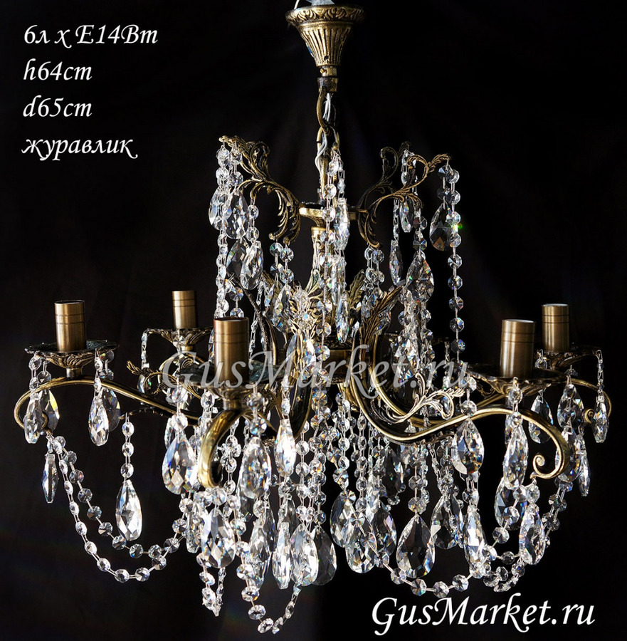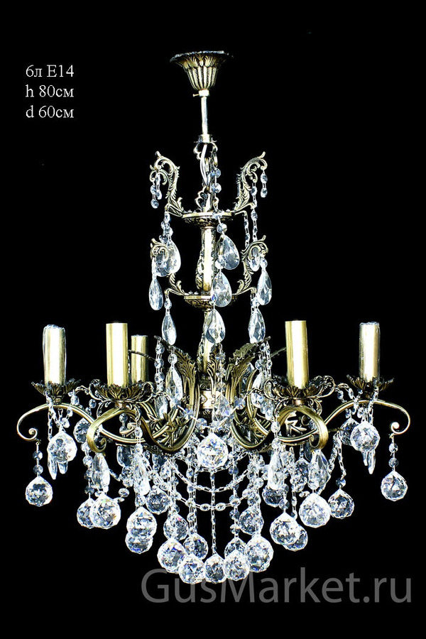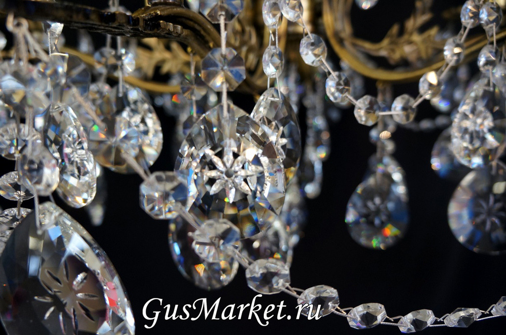 Хрустальная люстра в классическом стиле. Нижняя часть люстры дополнительно наряжена хрустальными шарами, пирамидкой или подвеской "Баден" на ваш выбор. Так же можем добавить цветные подвески. Люстра поставляется в собранном виде, крепление крючковое.
