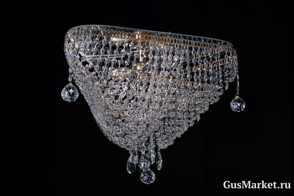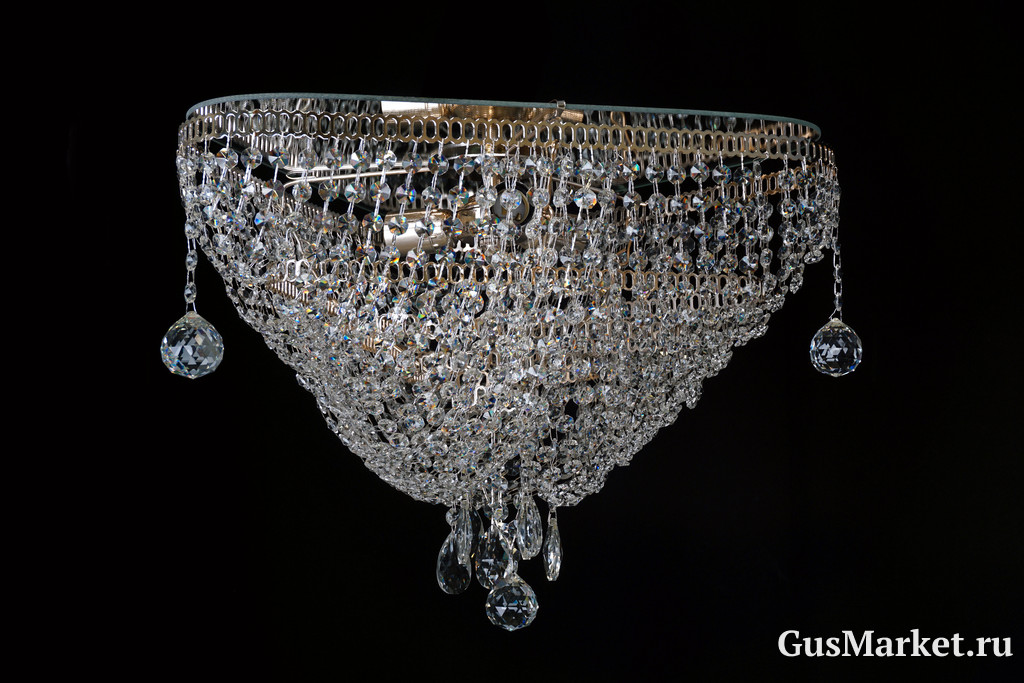 Хрустальная люстра с зеркалом. По форме повторяет треугольник. Люстра хорошо подходит как для детской так и для кухни. Дополнительно добавлены 7 хрустальных шаров. Крепление крючковое.
