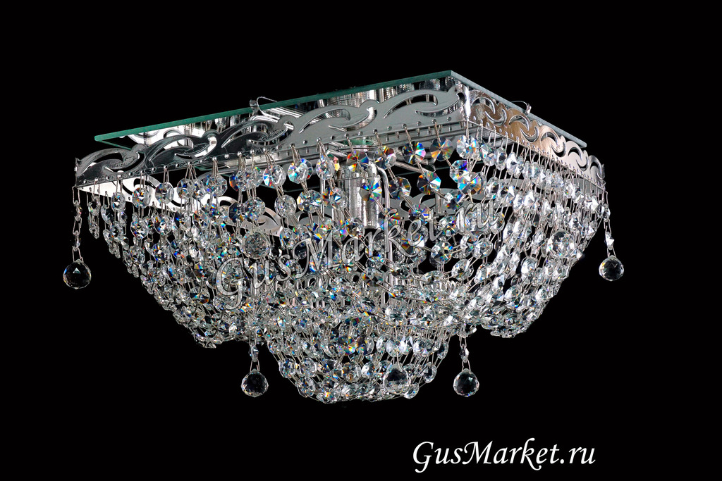 Люстра с зеркалом. Зеркало придает дополнительную игристость хрусталю и делает комнату светлей, а хрустальную люстру еще более яркой и привлекательной.