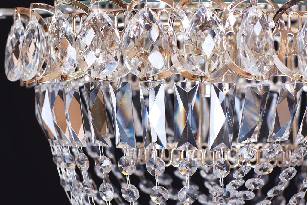Люстра в интерьере смотрится помпезно, хоть используемые материалы и нельзя назвать дорогими. При своей невысокой цене, это все же хорошая альтернатива чешскому стеклу, которым завалены все магазины. Нужно учитывать, что реальные ее диаметр несколько больше указанного, из-за выступающих элементов.