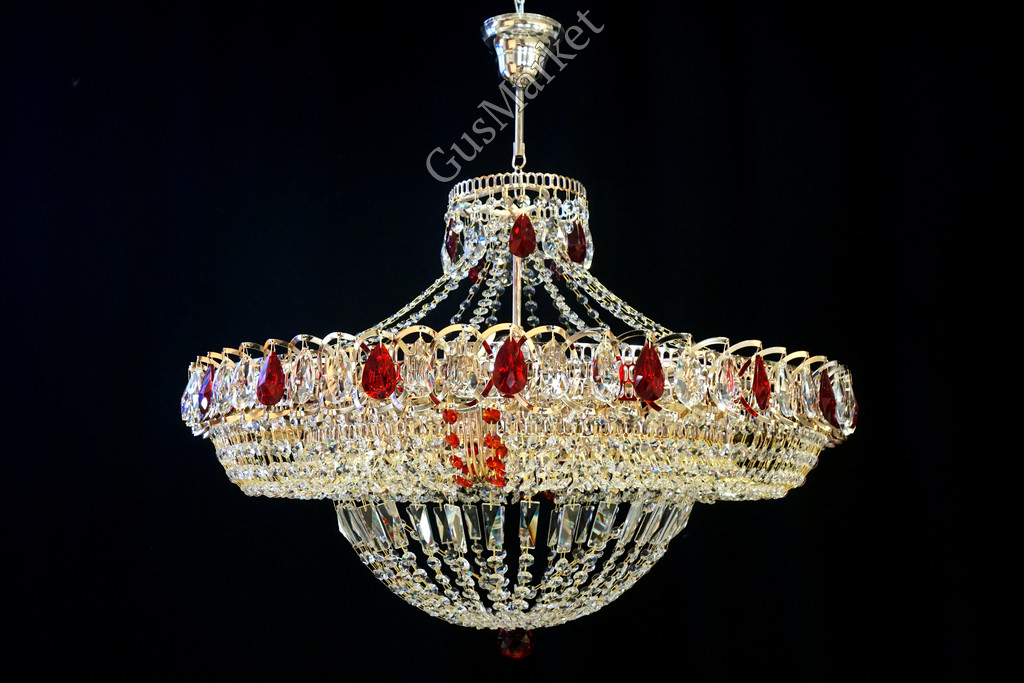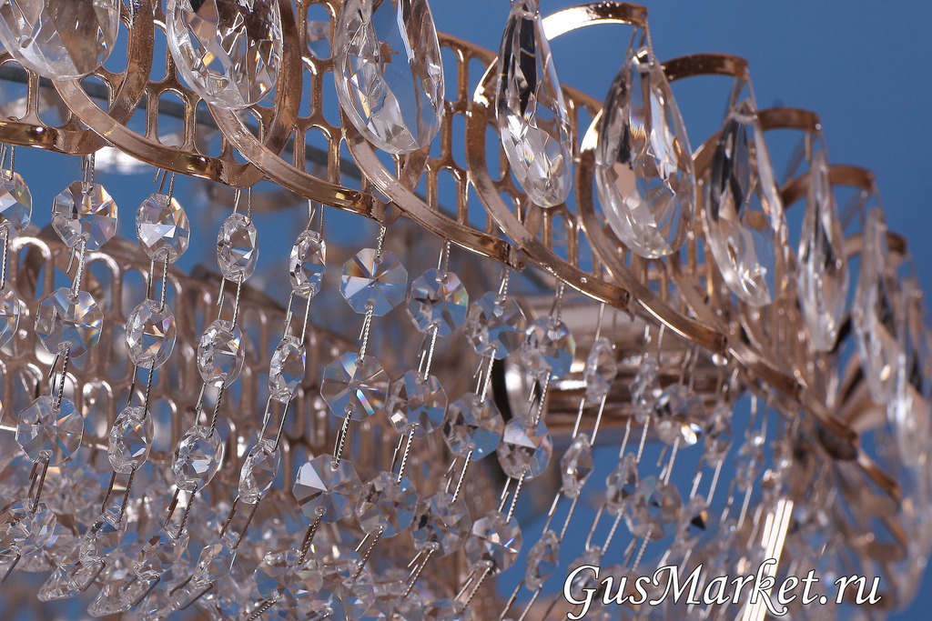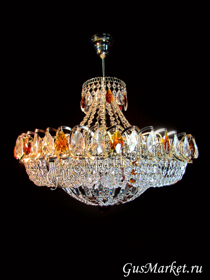 Заказывала люстру 70 см в диаметре на 8 ламп в цвете золото (оно действительно близко к серебру - поэтому не пожалела) с чайными вставками. Плюс к люстре были 4 бра Натали, тоже со вставками. Люстра действительно смотрится великолепно, 8 ламп предостаточно на площадь 22 м2 и высоту потолка 3,3 м. Хочу отметить, что без вставок люстра и бра смотрелись бы совершенно по другому - поэтому, советую не боятся экспериментировать! !! Заказ был доставлен в СПб курьером, быстро, ни одна хрусталинка не побилась, хотя были и запасные! Спасибо большое, Павел!