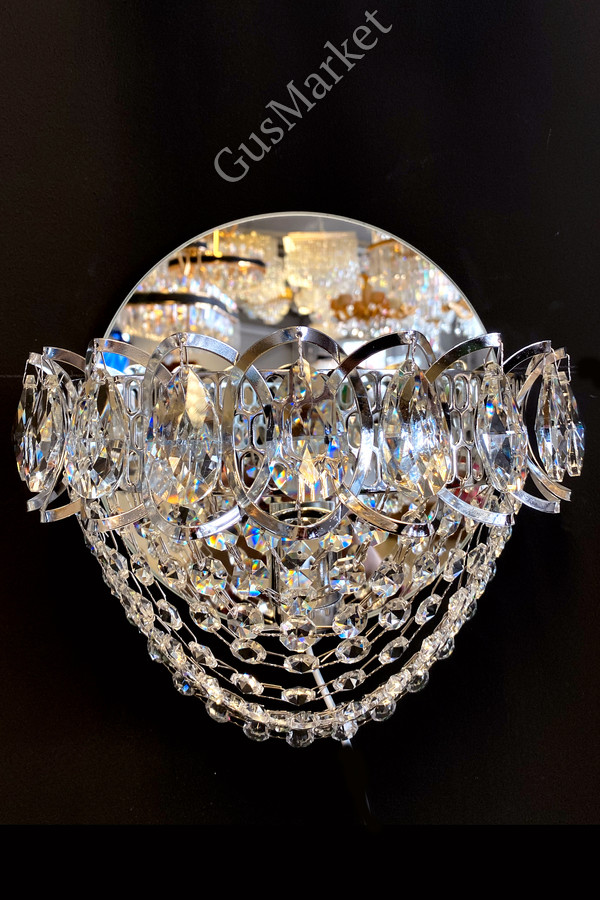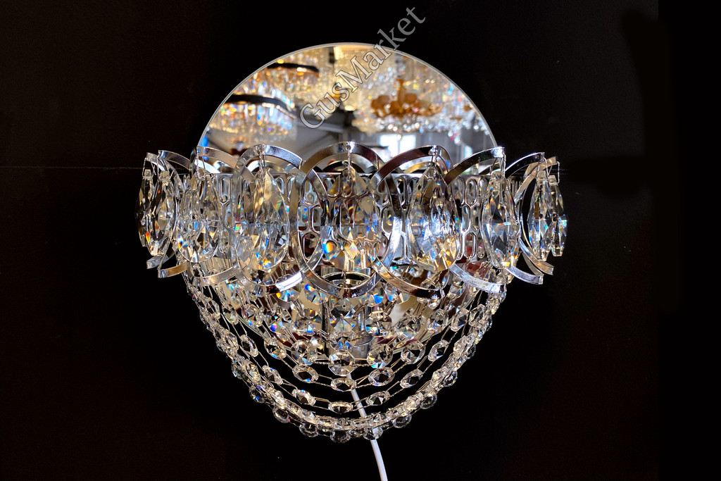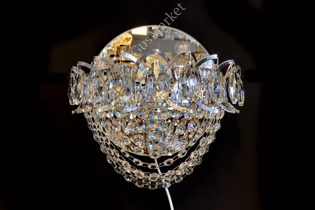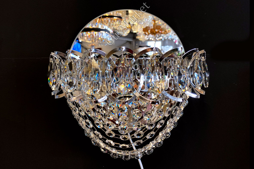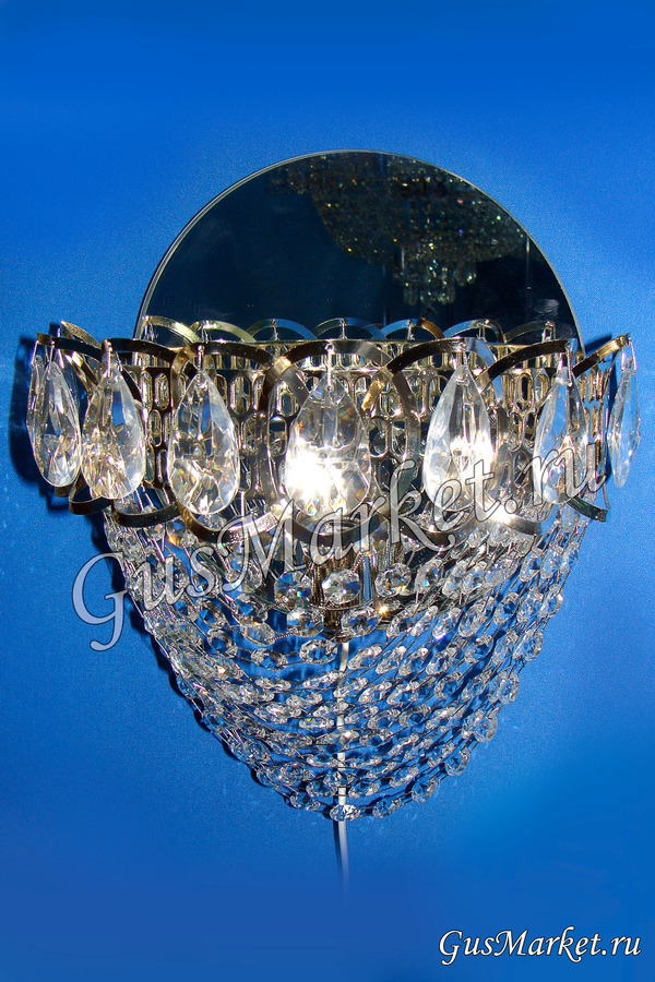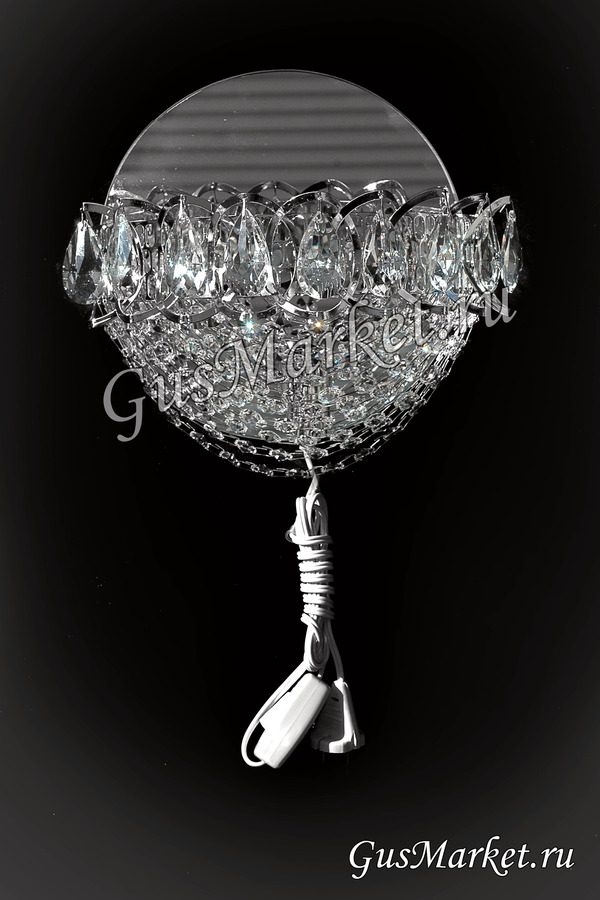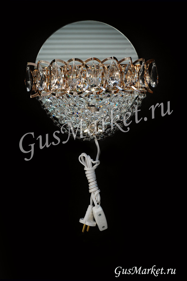 Бра производства г.Гусь-хрустальный. Поставляется в собранном виде. Крепление настенное на два самореза, располагается за зеркалом. Выключатель на проводе. Провод можно обрезать и подключить к выводу из стены.