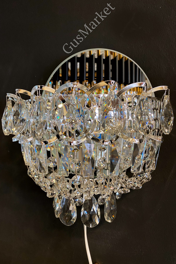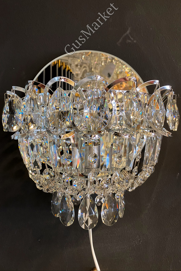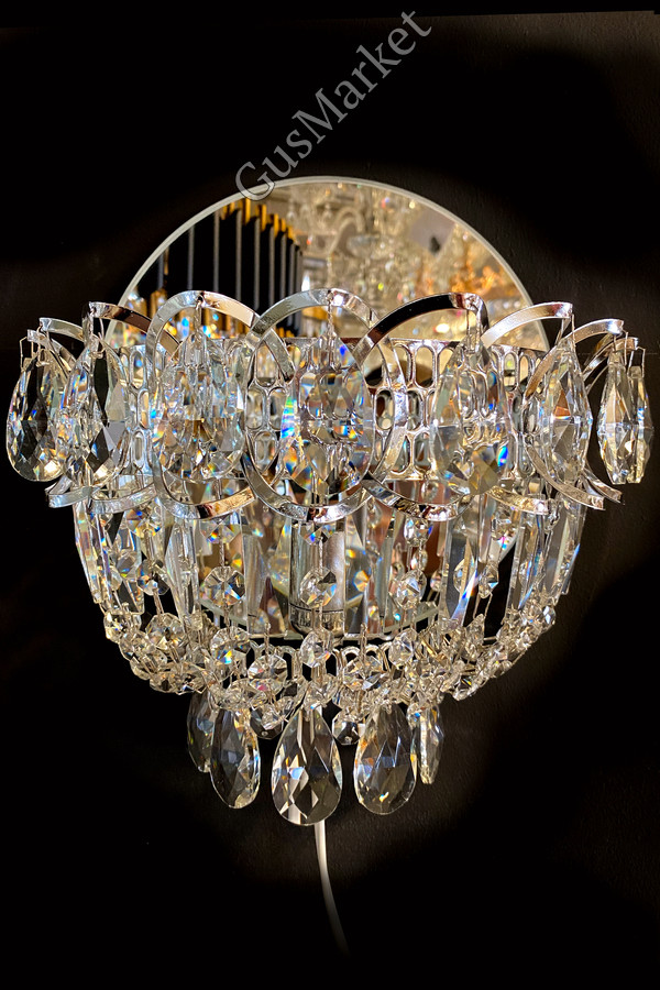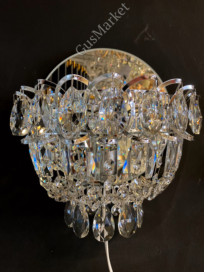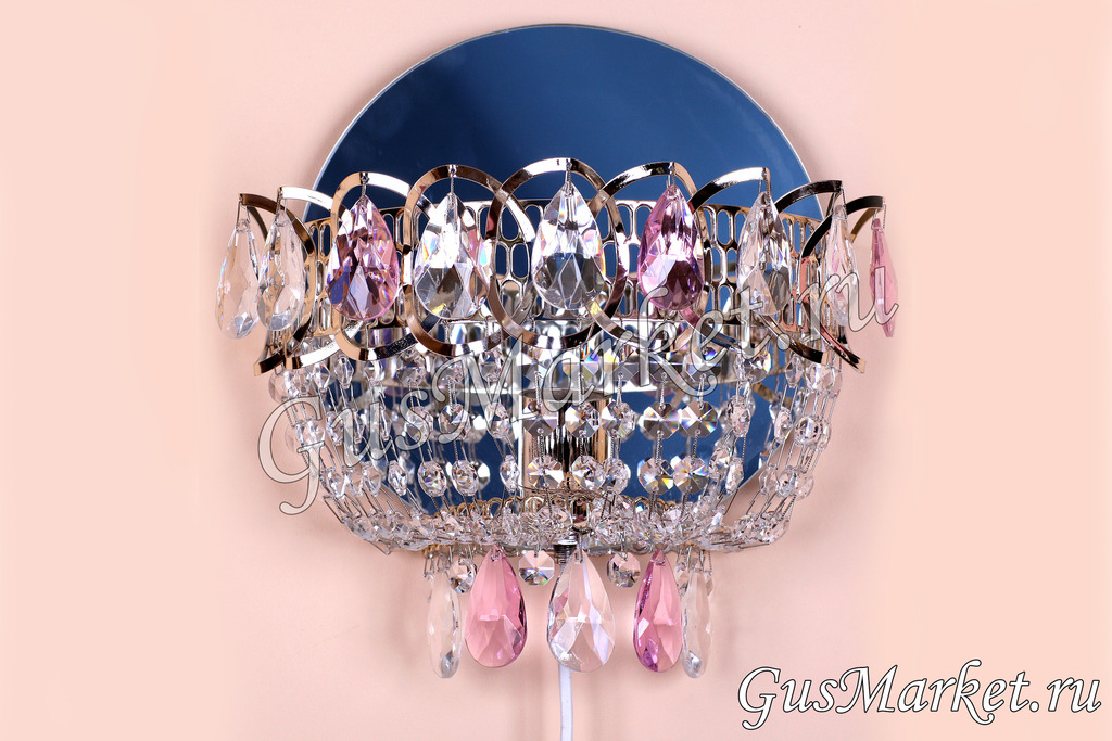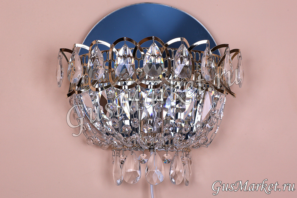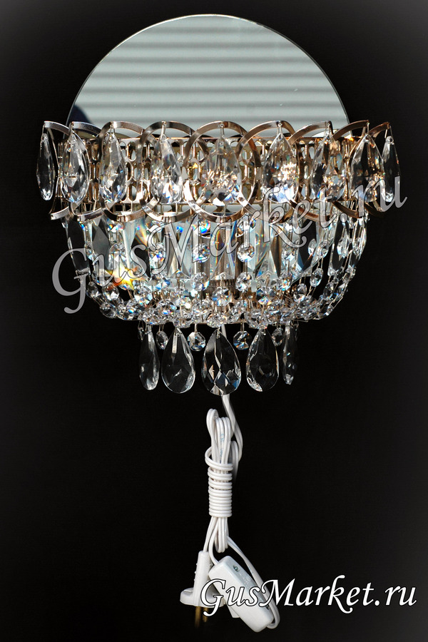 Бра производства г.Гусь-хрустальный. Поставляется в собранном виде. Крепление настенное на два самореза, располагается за зеркалом. Выключатель на проводе. Провод можно обрезать и подключить к выводу из стены.