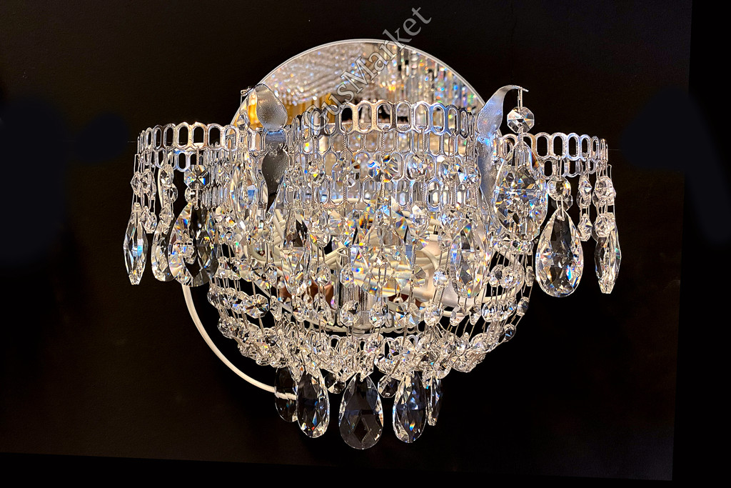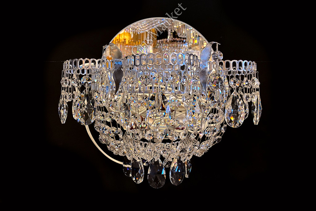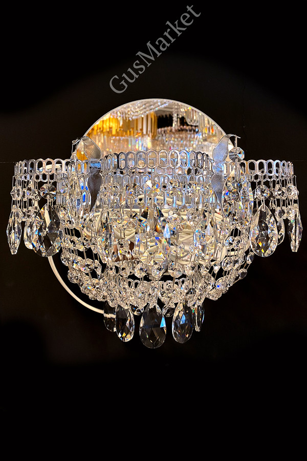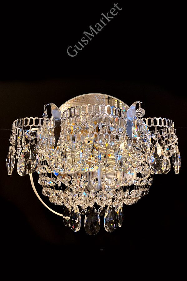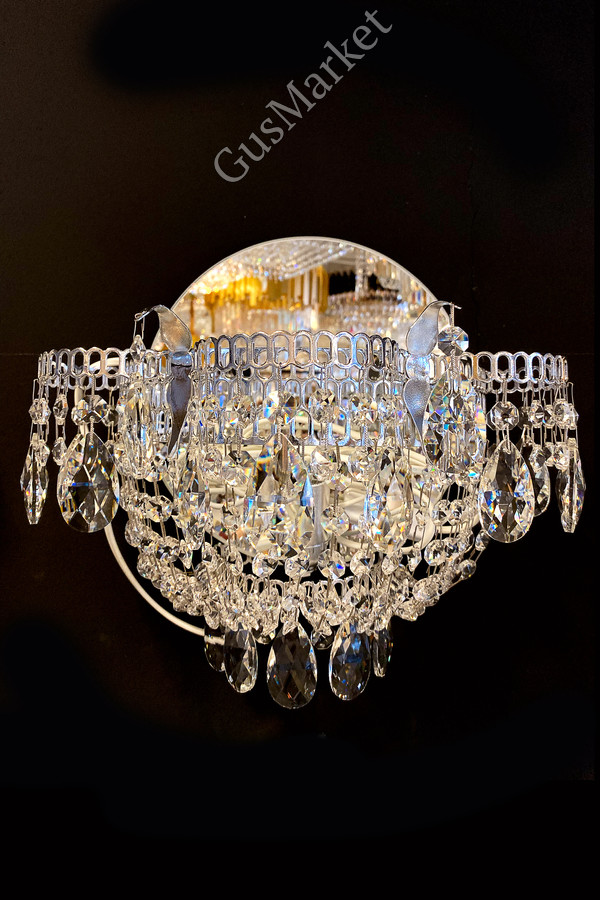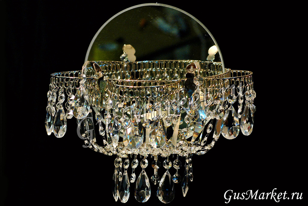 Бра производства г.Гусь-хрустальный. Поставляется в собранном виде. Крепление настенное на два самореза, располагается за зеркалом. Выключатель на проводе. Провод можно обрезать и подключить к выводу из стены.