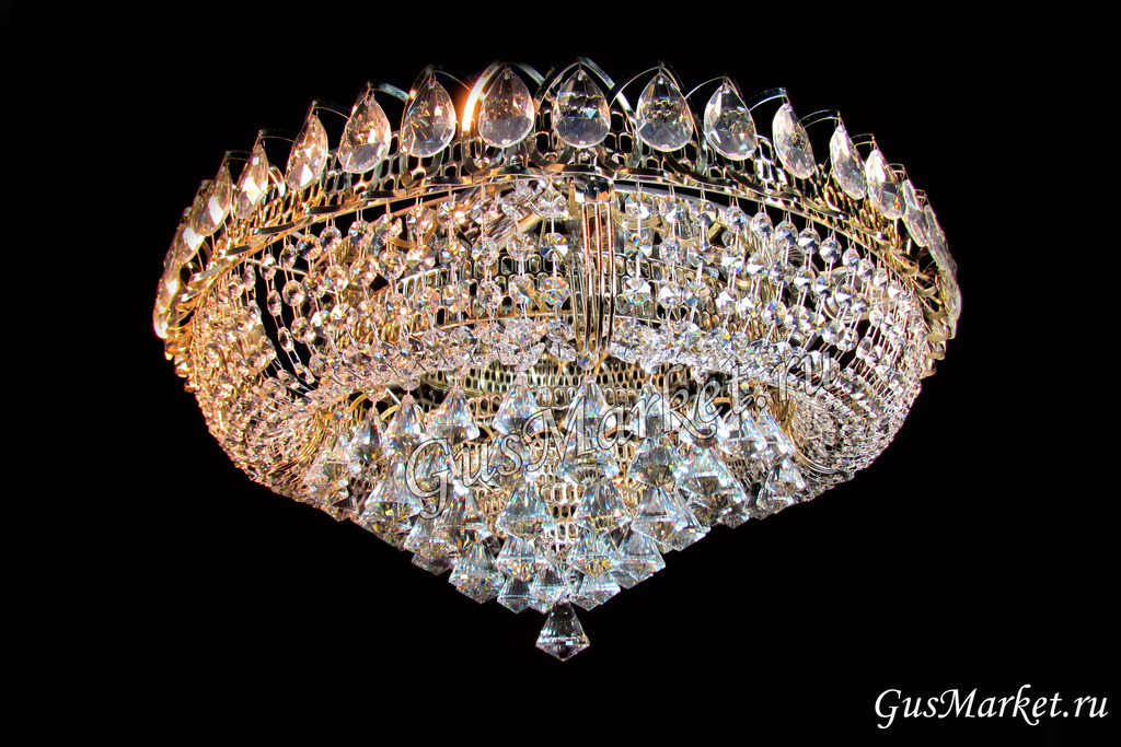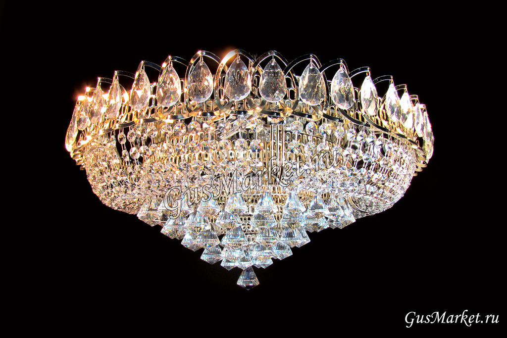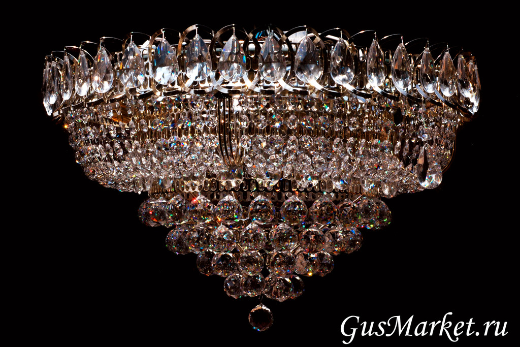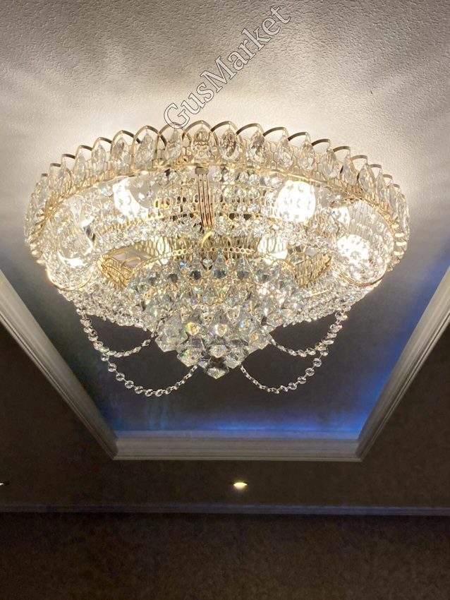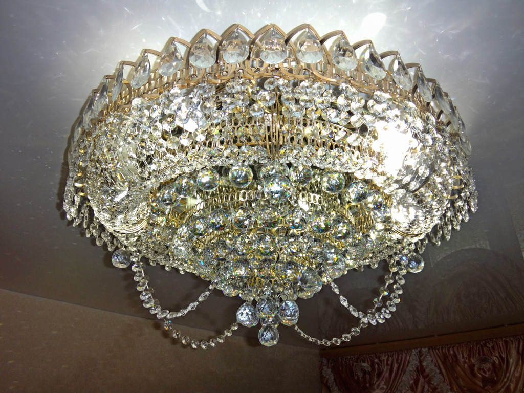 ПОвесить на потолок было непросто, но получилось очень красиво, заказали 55см, выглядит очень хорошо, большой или громоздкой совсем не кажется. Нравится то, что руками я до нее не достаю, как было со старой люстрой с плафонами. Хрусталики большие, блестят в темноте (хорошее качество, переливается) хрусталиков много, арматуры почти не видно, но и она неплохая. Мы довольны. ЧТобы ее повесить, пришлось попотеть :)