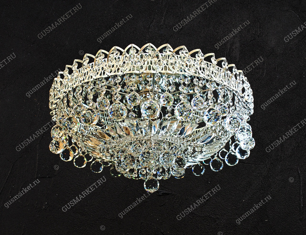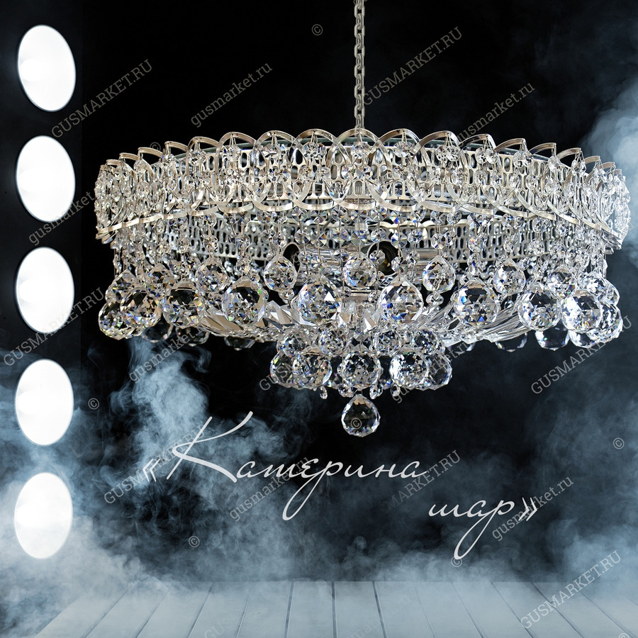 Хрустальная люстра «Катерина Шар». Простая и классическая форма, а также богатство хрустальных подвесок в виде многогранных сфер.