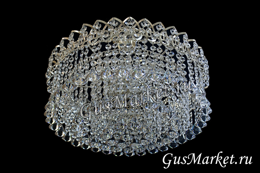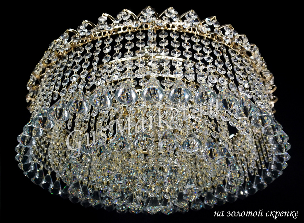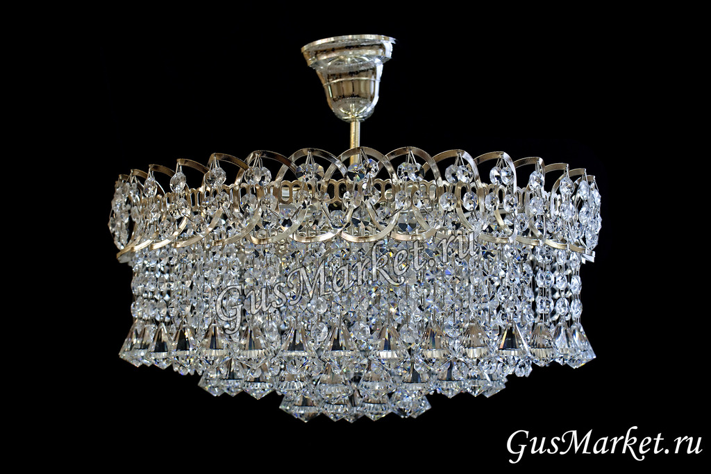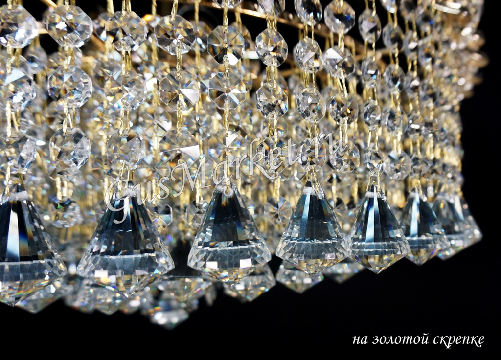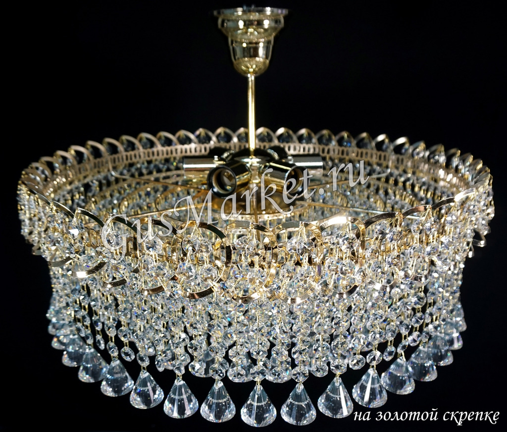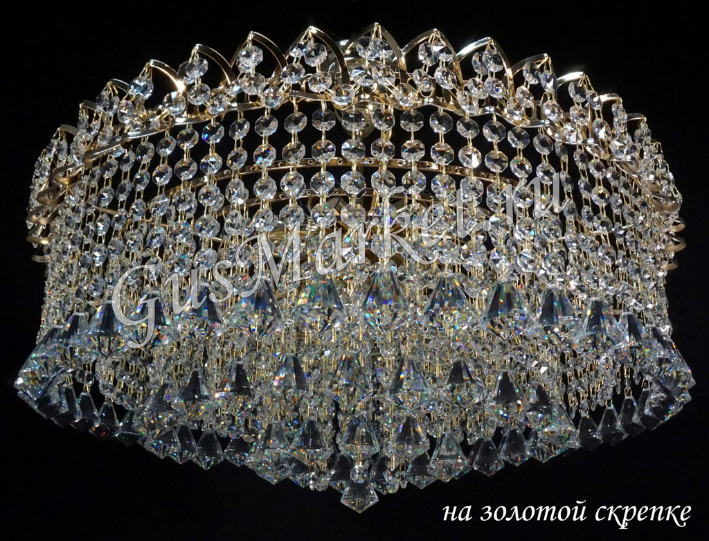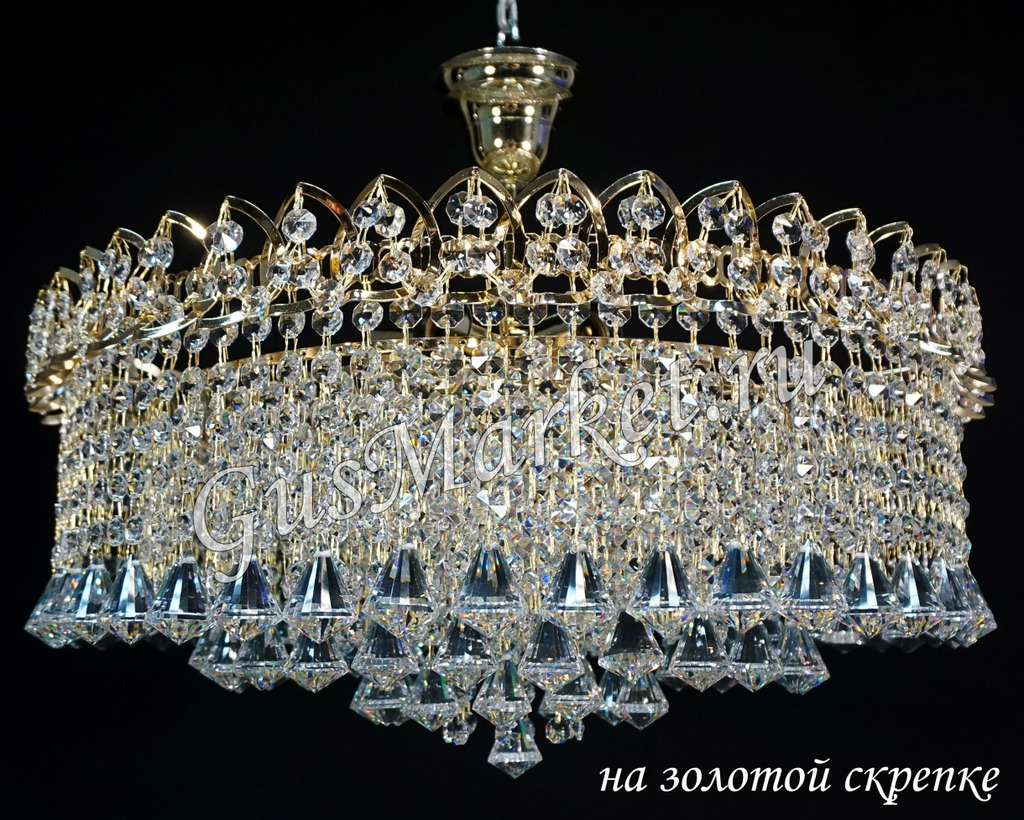 Хрустальная люстра "Капель" с конусом, производство г. Гусь-Хрустальный. Высоту люстры можно сделать под заказ до 1,5 метра. Возможно добавление цветных хрусталиков. Поставляется в собранном виде. Крепление крючковое.