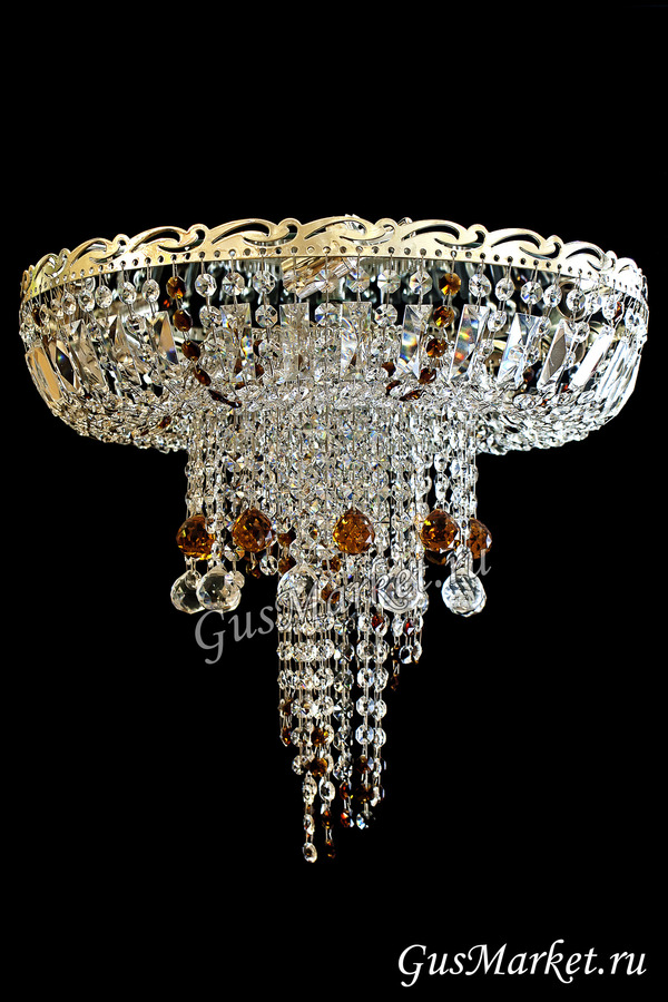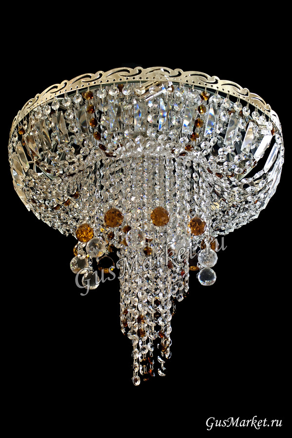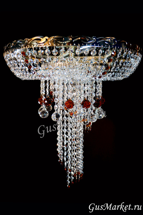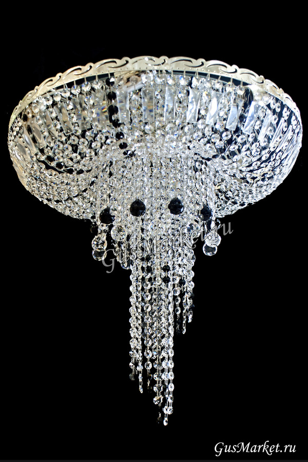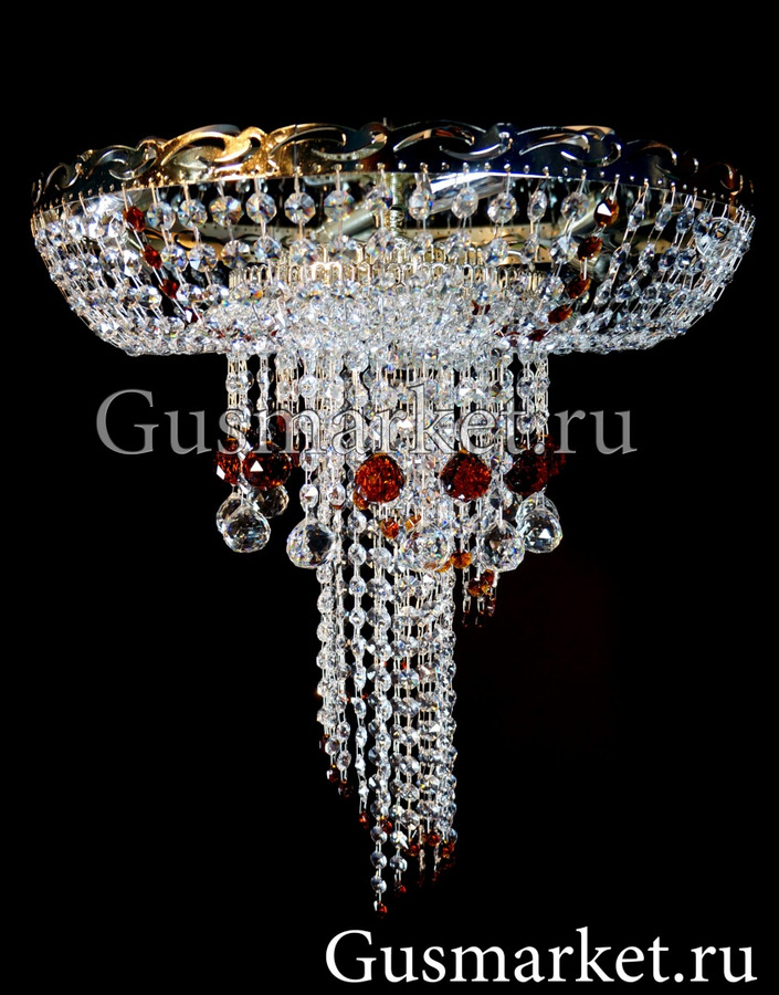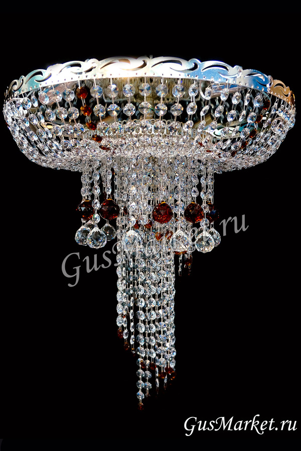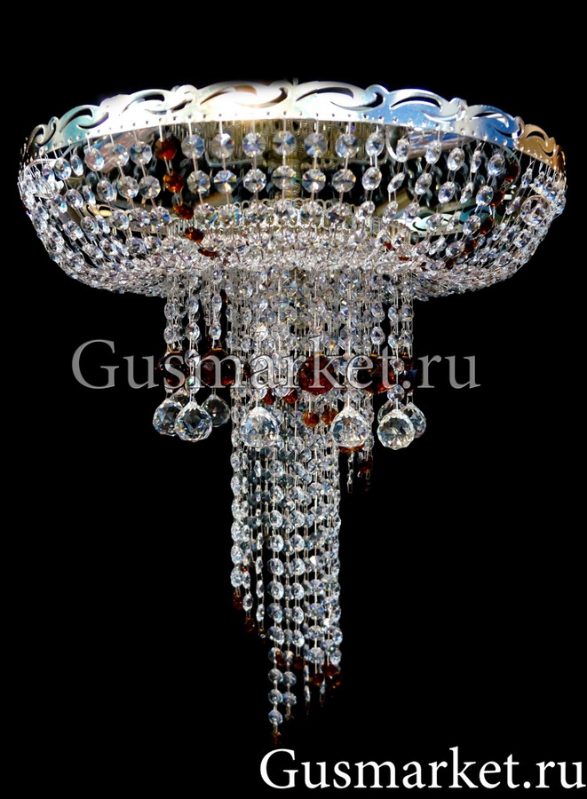 Хрустальная люстра "Анжелика" с зеркалом, дополнительно украшена шариками. Производство г. Гусь-Хрустальный. Возможно добавление цветных хрусталиков. Крепление крючковое. Поставляется в собранном виде.