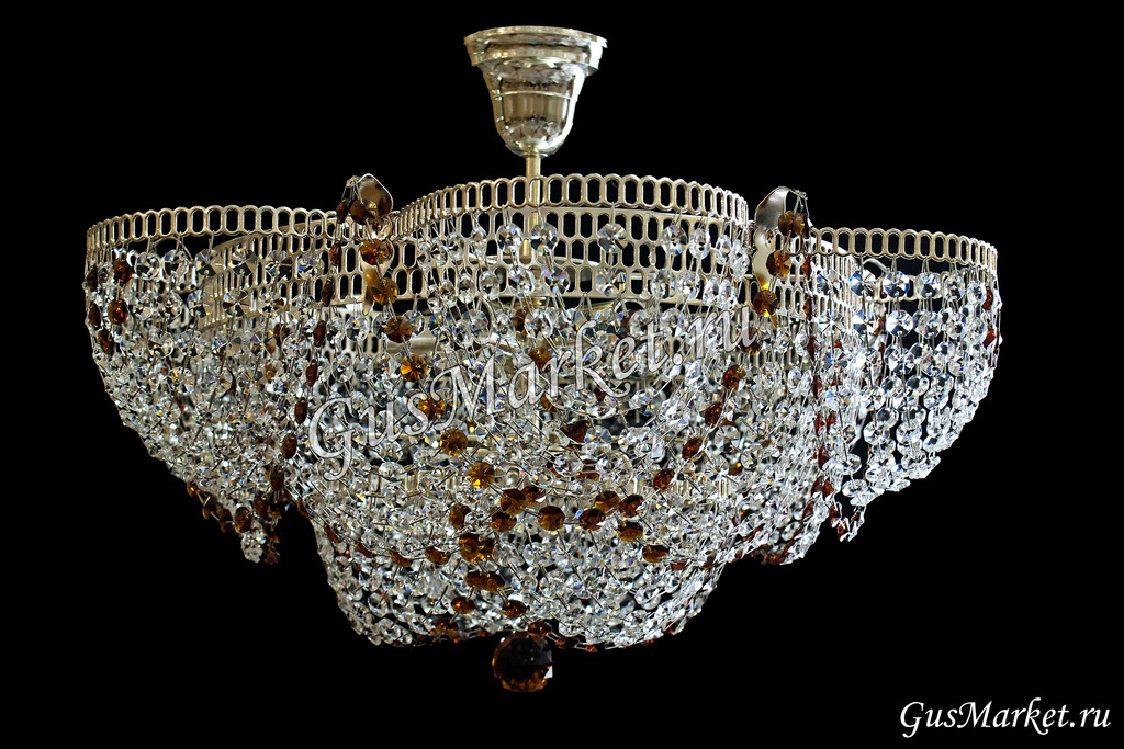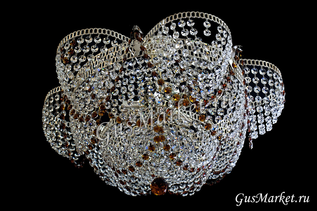 Хрустальная люстра "Роза", производство г. Гусь-Хрустальный. Возможно добавление цветных хрусталиков. Возможен также потолочный вариант с зеркалом. Поставляется в собранном виде. Крепление крючковое.