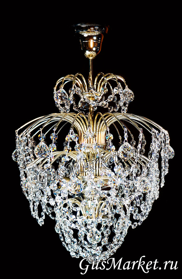 Хрустальная люстра "Брызги", производство г. Гусь-Хрустальный. Возможно добавление цветных хрусталиков. Крючковое крепление. Поставляется в собранном виде.