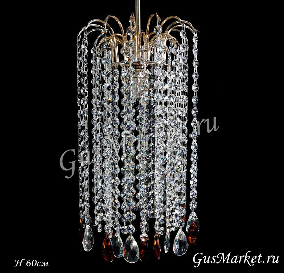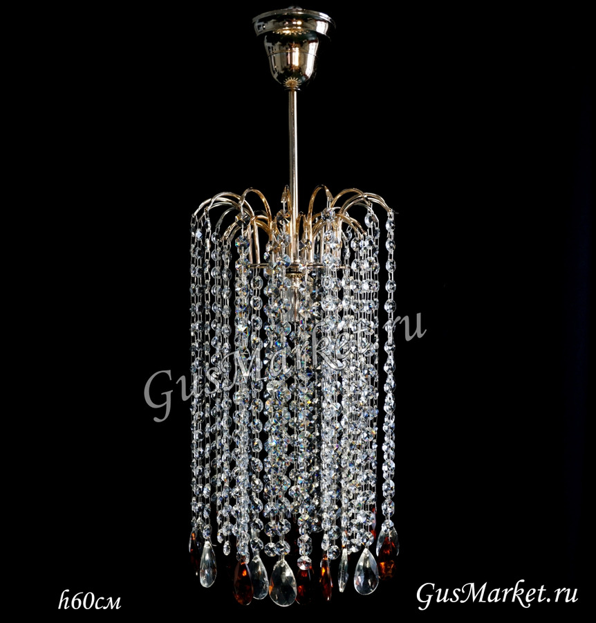 Хрустальная люстра "Каскад", производство г.Гусь-Хрустальный. Возможно добавление цветных хрусталиков. Возможна высота по заказу. Поставляется в собранном виде. Крепление крючковое.