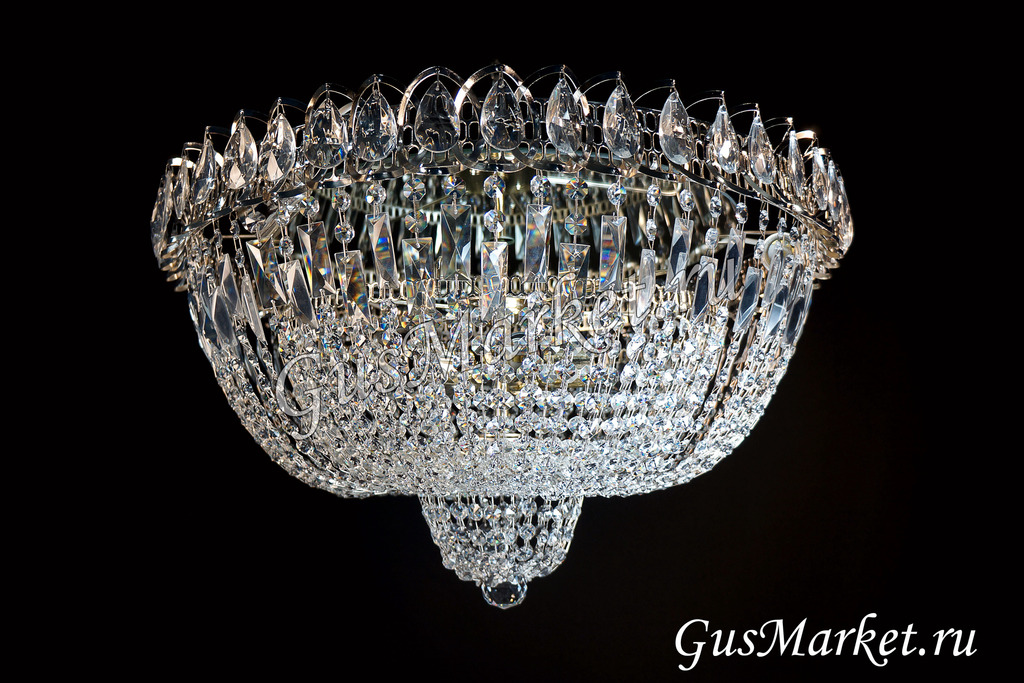 Производство г. Гусь-Хрустальный. Интересная вариация люстры "Водопад", с двойным слоем хрусталя. Лампочки расположены в горизонтальной плоскости. Возможно добавление цветного камня. Люстра поставляется в собранном виде, крепление крючковое.