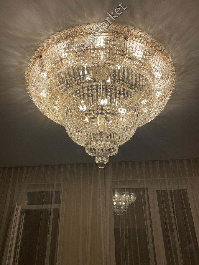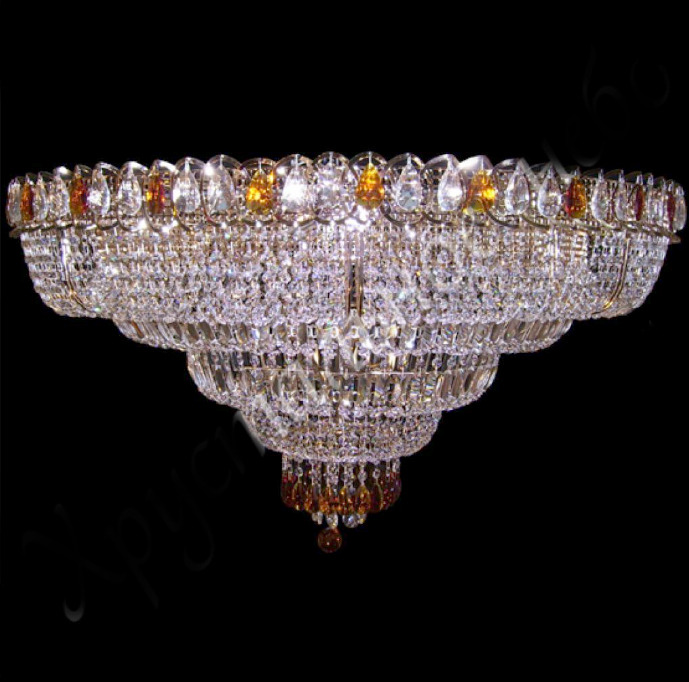 Люстра производства г. Гусь-Хрустальный, выполняется на заказ. Возможно добавление цветного камня. Большая люстра в классическом стиле. Люстра с зеркалом. Изготавливается на заказ. Исполняется в двух вариантах.