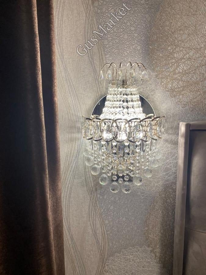 Хрустальный бра "Натали" шар. производство г.Гусь-Хрустальный. Возможно добавление цветного хрусталя. Крепление располагается за зеркалом, крепление на два самореза. Выключатель на проводе, при необходимости можно обрезать, для внутреннего подключения.