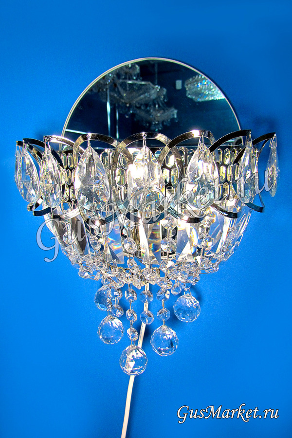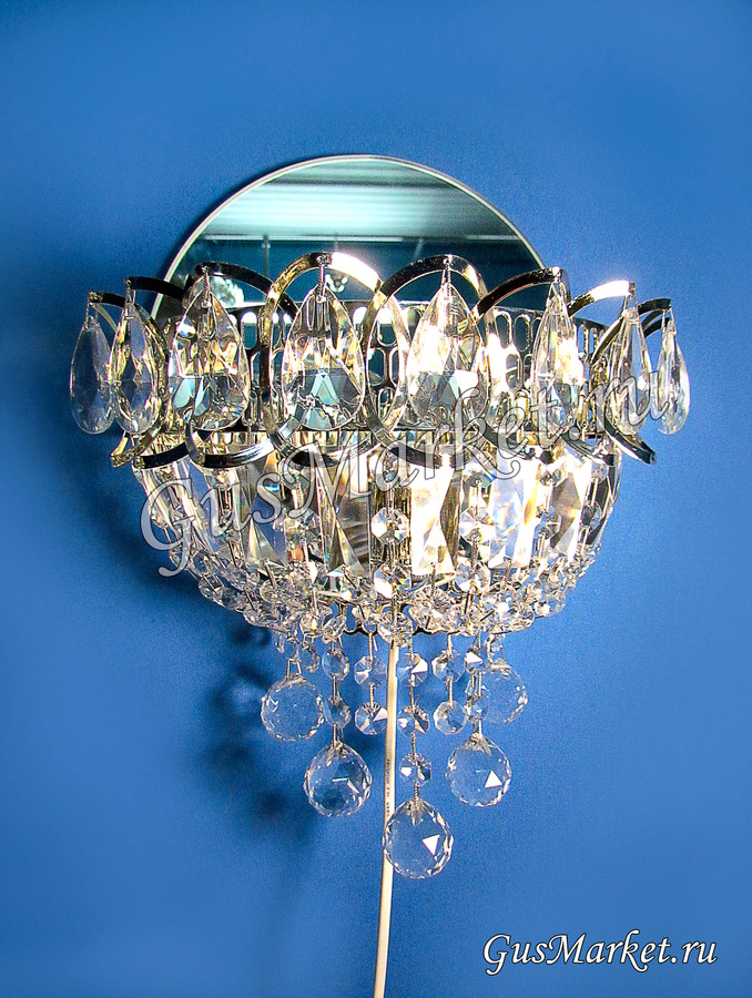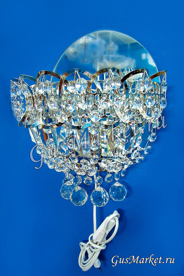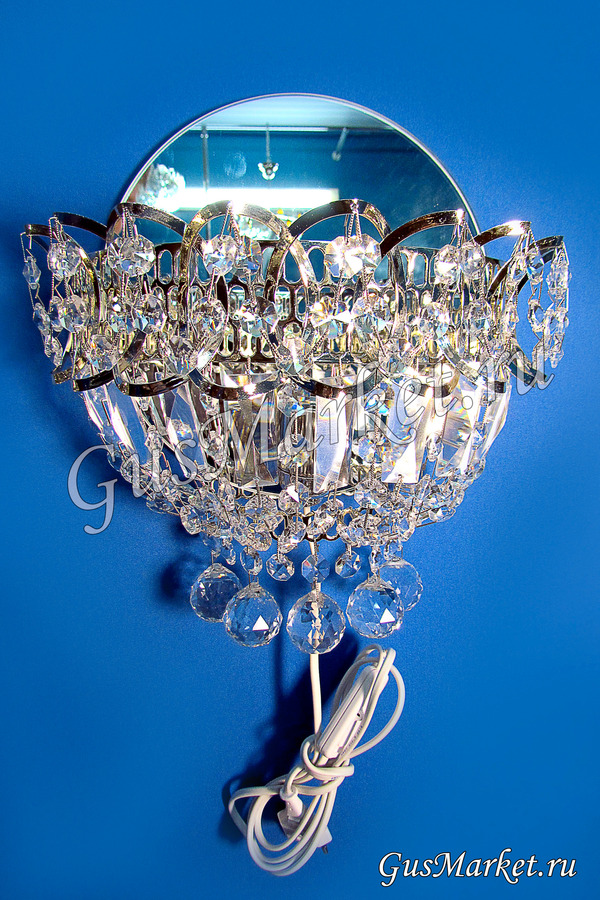 Бра производства г.Гусь-хрустальный. Поставляется в собранном виде. Крепление настенное на два самореза, располагается за зеркалом. Выключатель на проводе. Провод можно обрезать и подключить к выводу из стены.