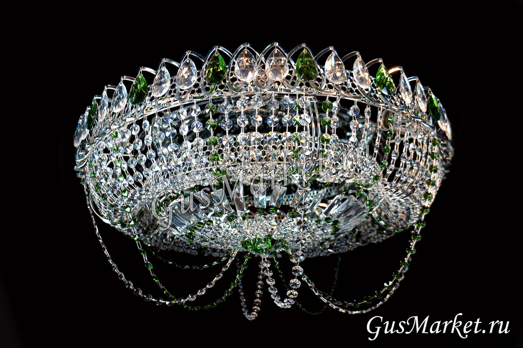 Люстра с зеркалом. Зеркало придает дополнительную игристость хрусталю и делает комнату светлей. Люстра г. Гусь-Хрустальный. Крепление крючковое. Поставляется в собранном виде.