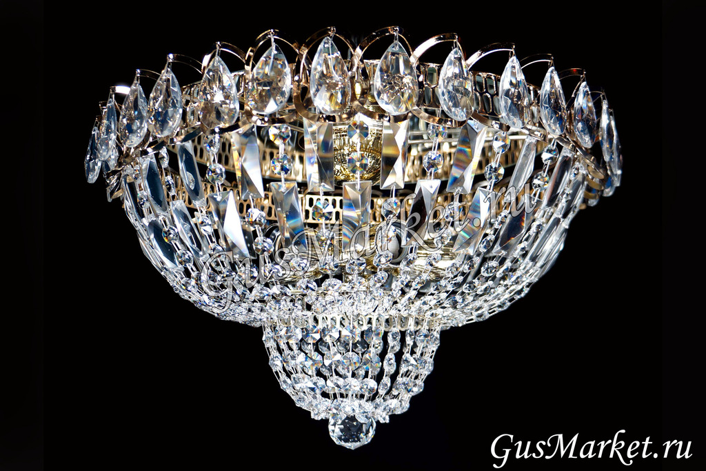Люстра производства г.Гусь-Хрустальный. Потолочная люстра с зеркалом. Под заказ можем добавить цветной камень. Поставляется в собранном виде. Крепление крючковое.
