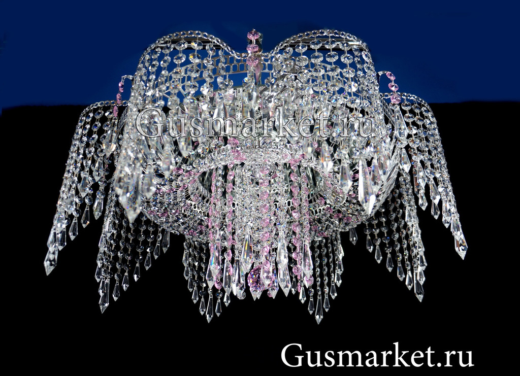 Хрустальная люстра с зеркалом. Возможно добавление цветного хрусталя. Люстра производства г. Гусь-Хрустальный. Крепление на крючок. Основание металлическое.