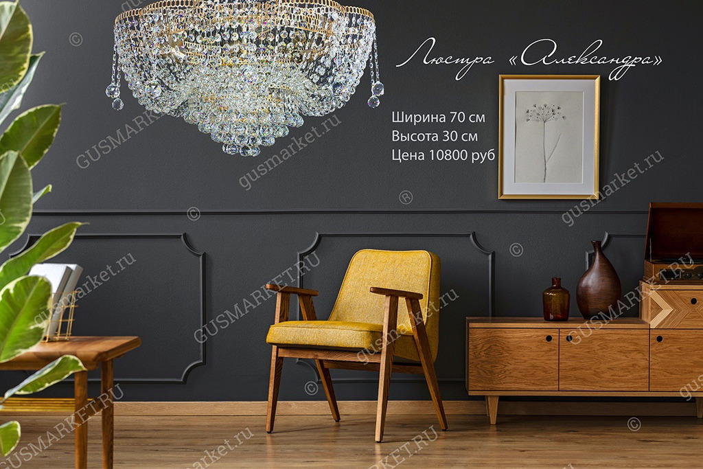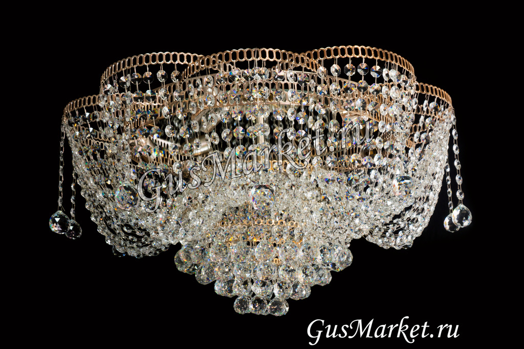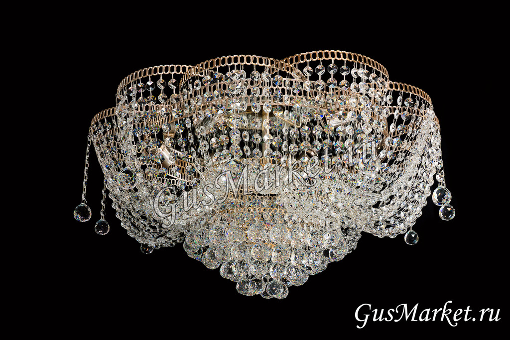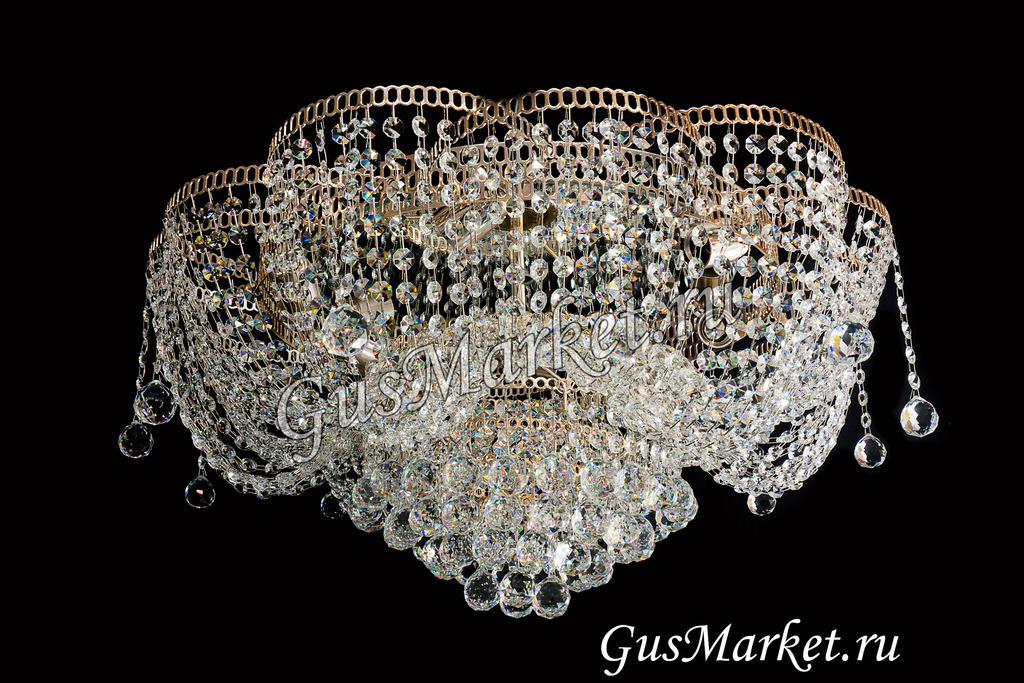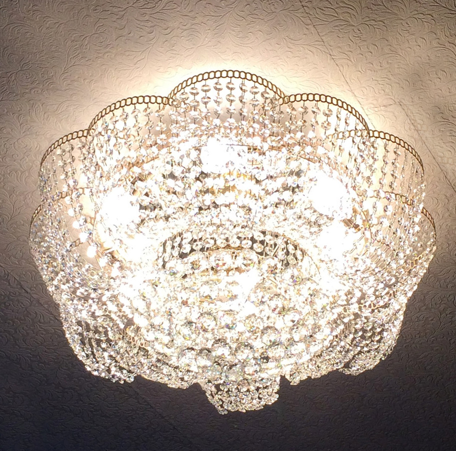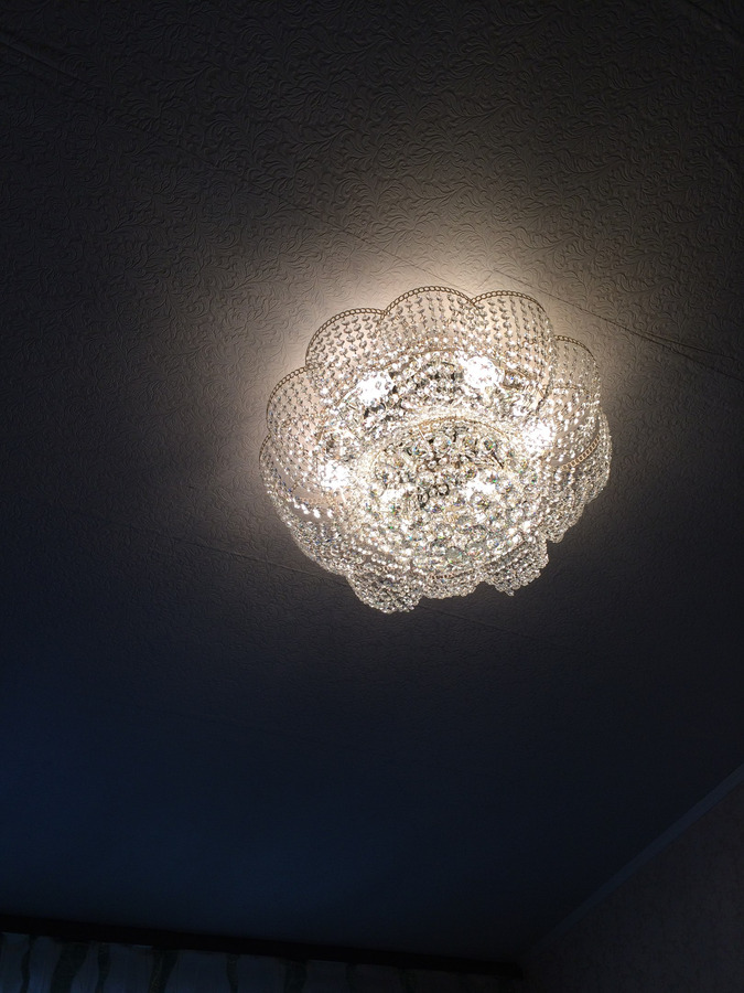 Отличная люстра, очень красива, хрусталь потрясающе играет даже при естественном освещении. Но для того, чтобы он сильнее блестел при зажженных лампах лучше использовать прозрачные лампы накаливания (не матовые), ни светодиоды, ни энергосберегающие лампы такого эффекта не дают. Масса люстры больше 5 кг, поэтому надо подготовить крепкий крючок. Покупала для комнаты 18 кв м, когда привезли, испугалась, что очень большая. Когда повесили - отлично.