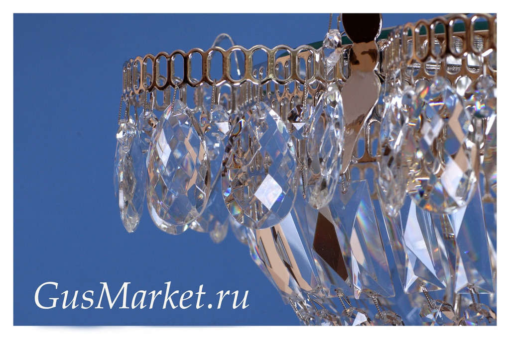 Люстра хрусталь, производство Гусь-Хрустальный. Возможно добавление цветного хрусталя. Разные виды подвесок. Поставляется в собранном виде. Крепление крючковое.