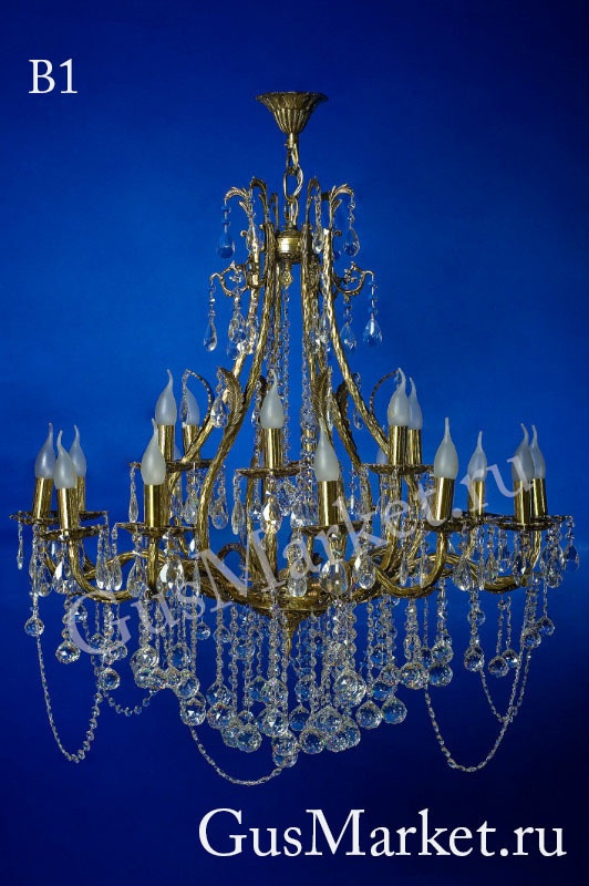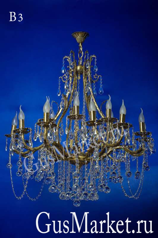 Люстра «Бронза». Для больших, шикарных помещений. Фурнитура — бронза, литье. Подвески — хрусталь.