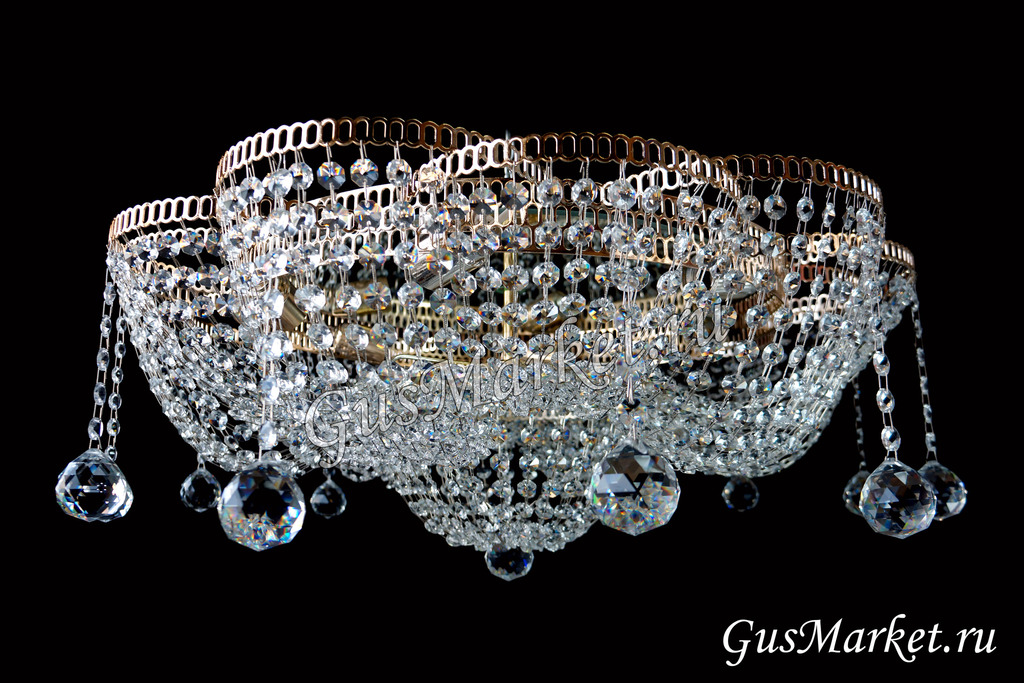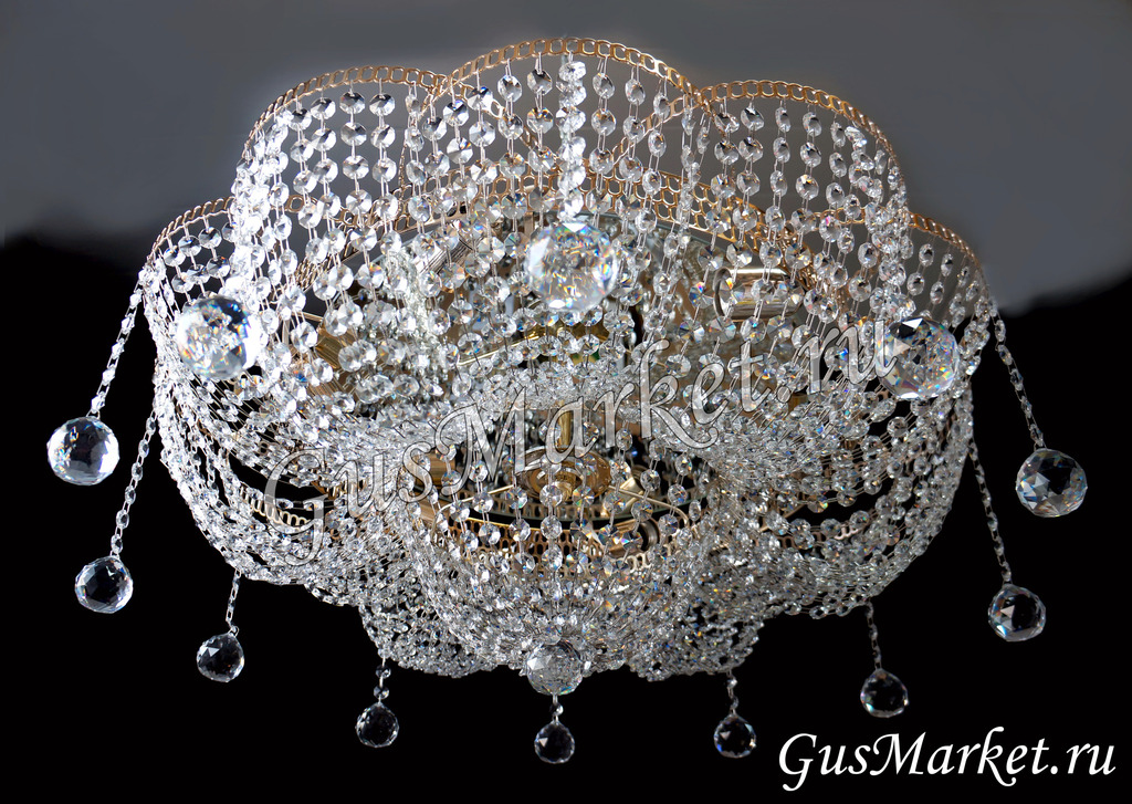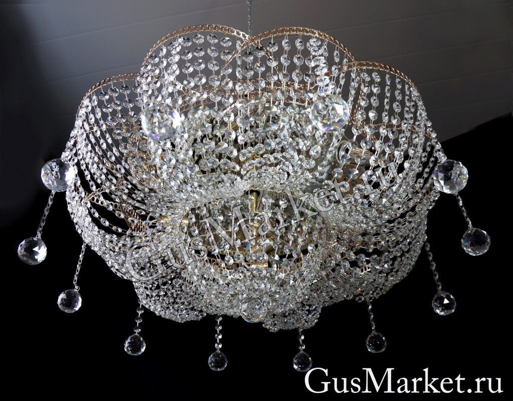 Хрустальная люстра "Лотос" купол, производства г. Гусь-Хрустальный, люстра с зеркалом. Возможно добавление цветного хрусталя. Поставляется в собранном виде, крепление крючковое.