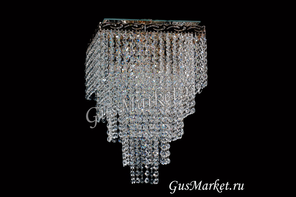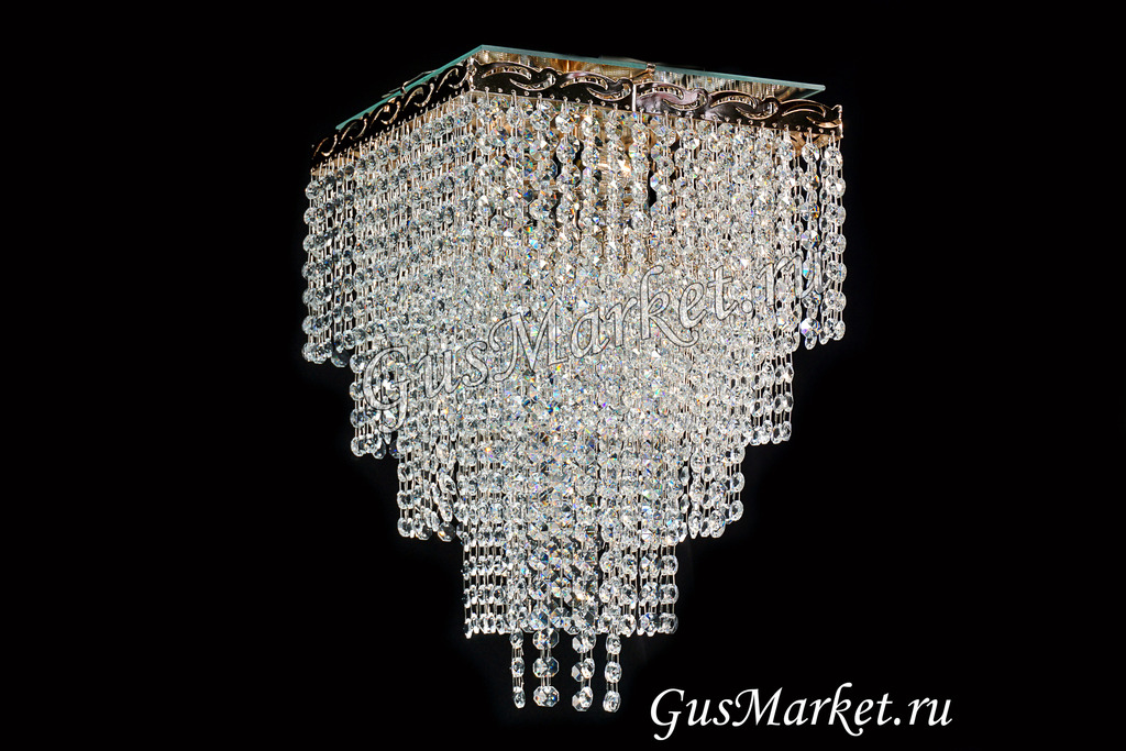Хрустальная люстра "Квадрат" с зеркалом, производство г.Гусь-Хрустальный. Возможно добавление цветных хрусталиков. Люстру можно сделать высотой до 2 м, согласовывается по телефону, стандартная высота 46 см. Крепление крючковое.