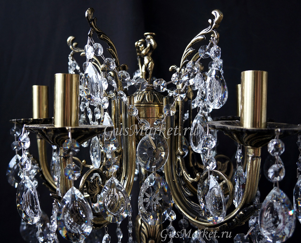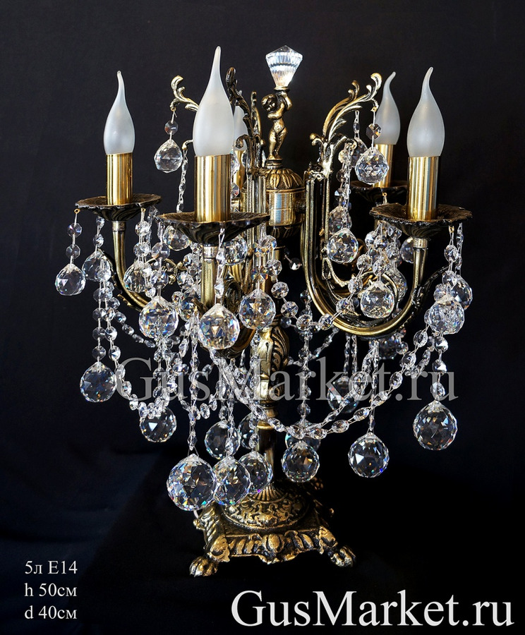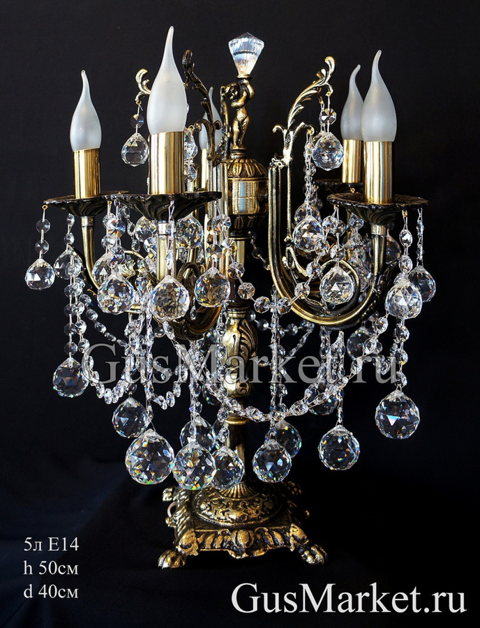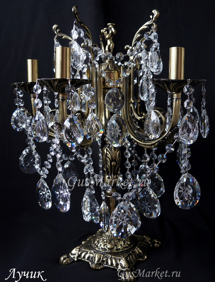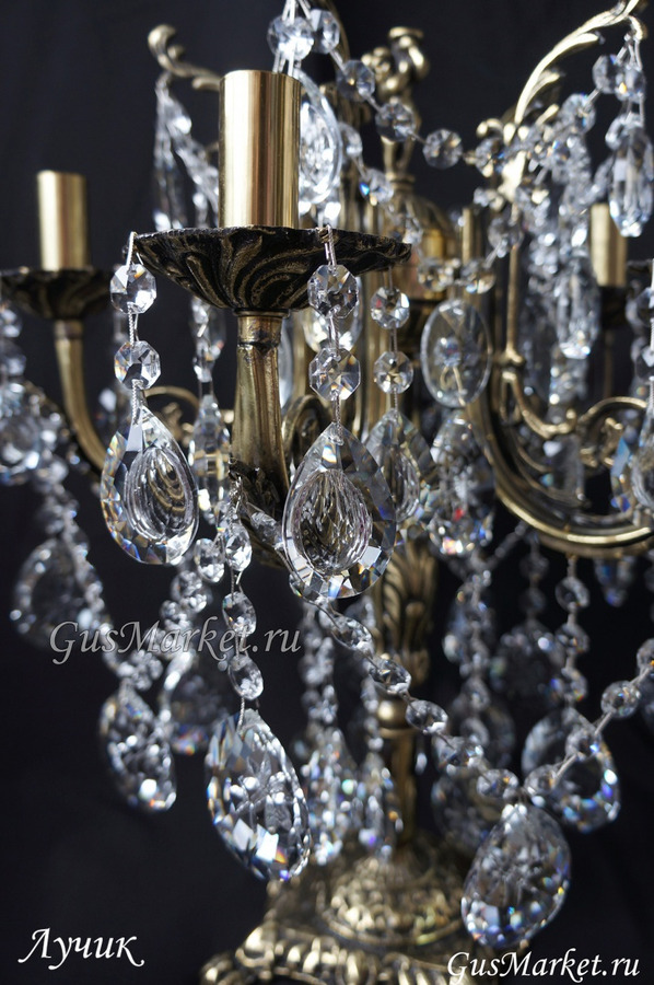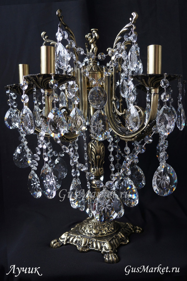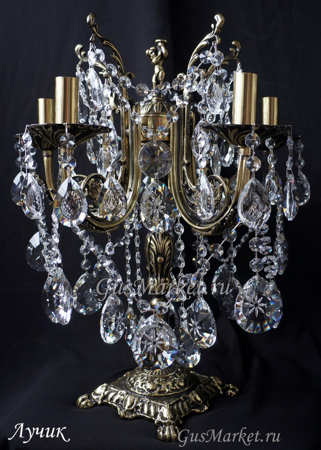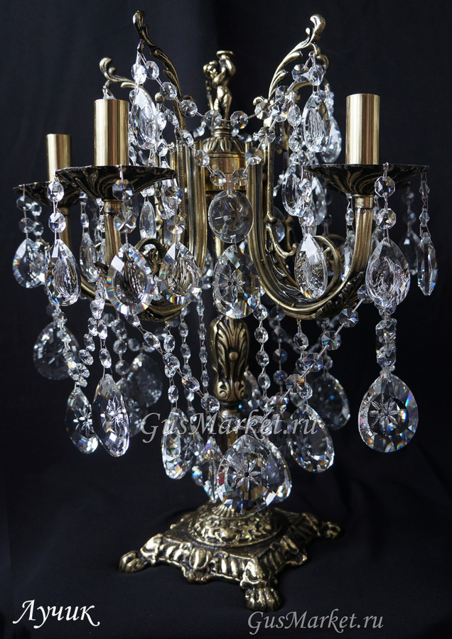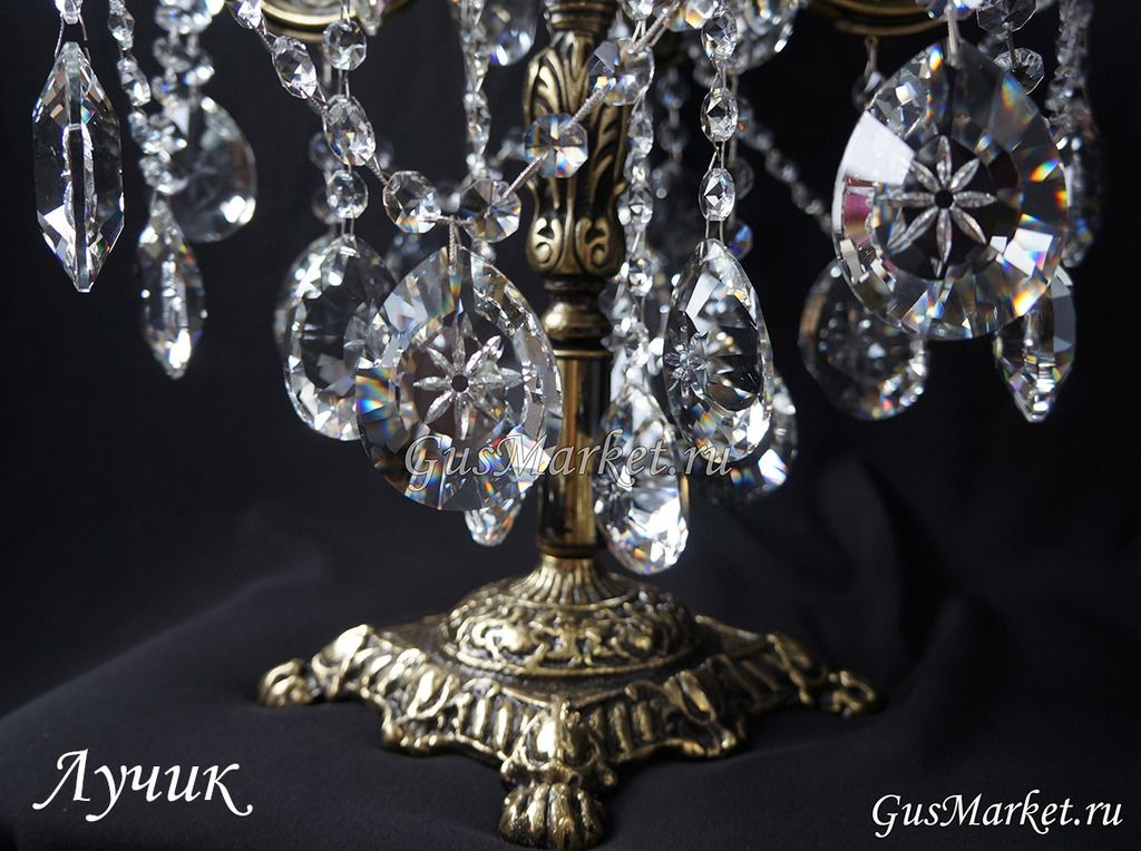 Настольная лампа производства г. Гусь-Хрустальный. Материал бронза и хрусталь. Выключатель на проводе.