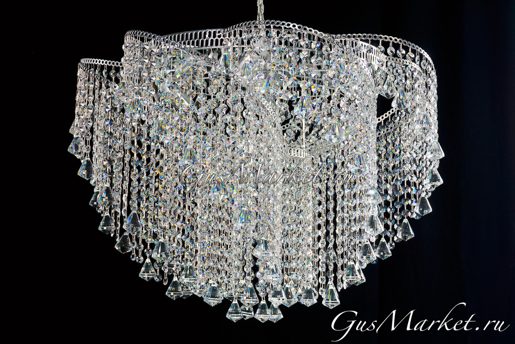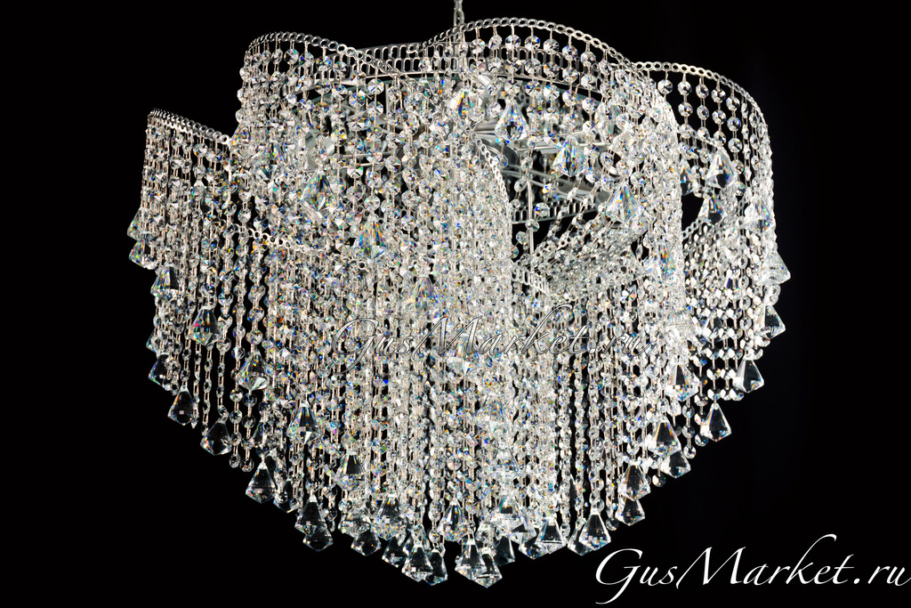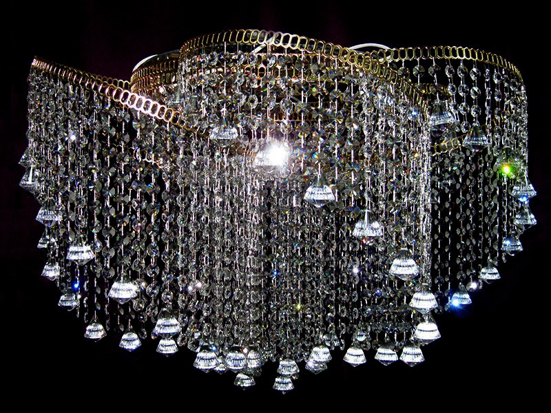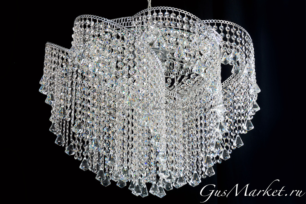 Люстра смотрится просто роскошно! Рекомендую в помещения с натяжными потолками - люстра крепится идеально, "под потолок". Боялась, что будет низковато - совершенно напрасно. Площадь помещения - 23 кв.м., лампы поставила светодиодные, прозрачные, специально для хрусталя.Свет отражается в каждом элементе, играет всеми цветами радуги, подчеркивая красоту этого чуда! Современный дизайн не оставляет сомнений при выборе, я в восторге! Шикарная, одним словом, очень советую!