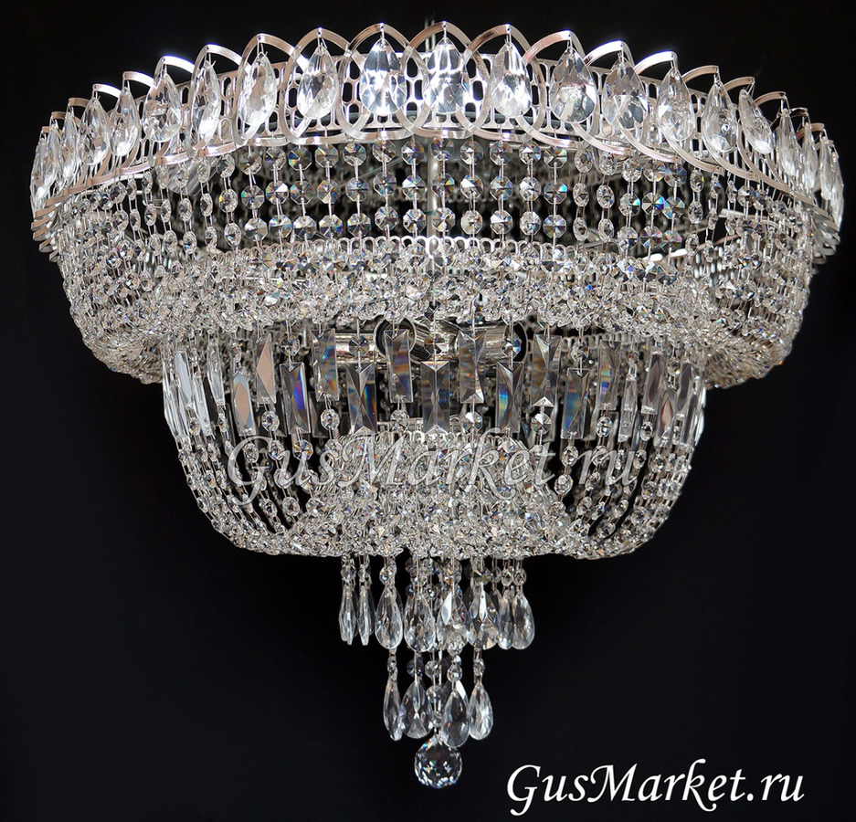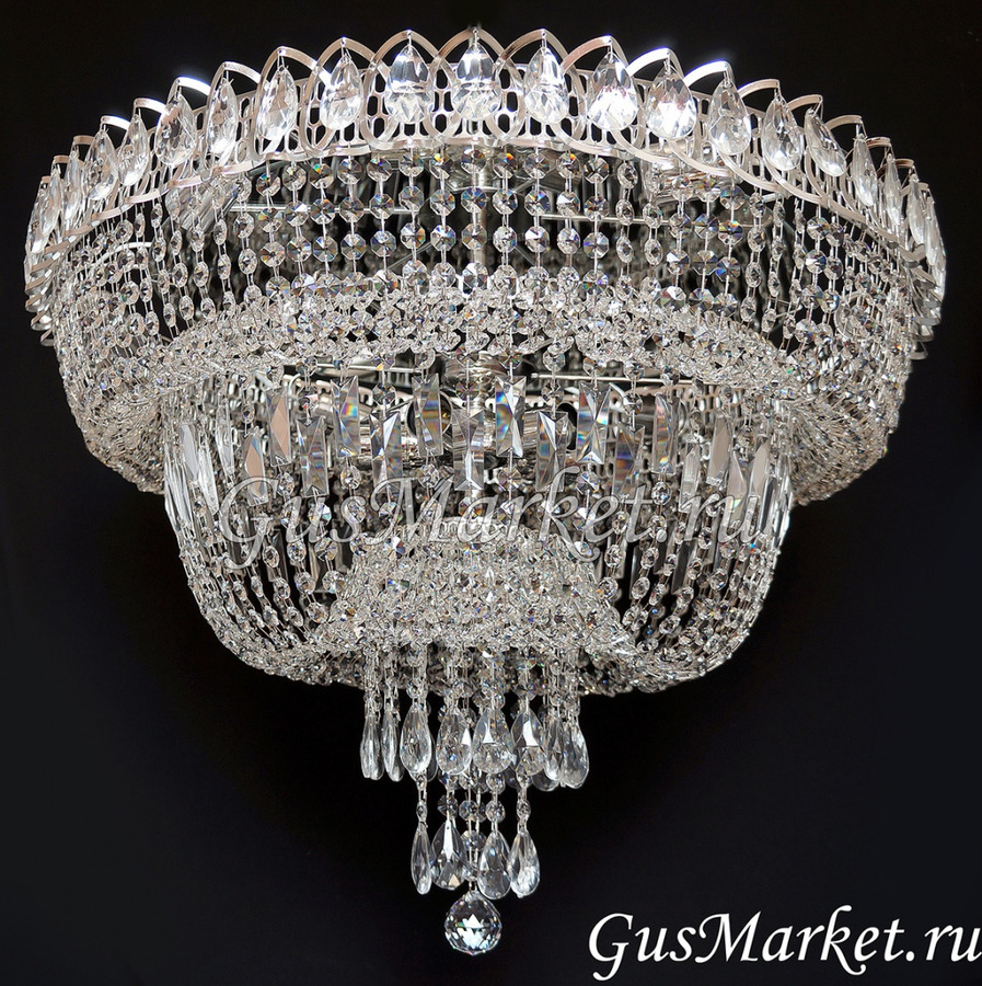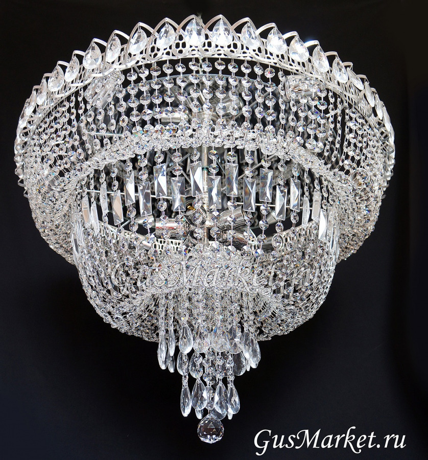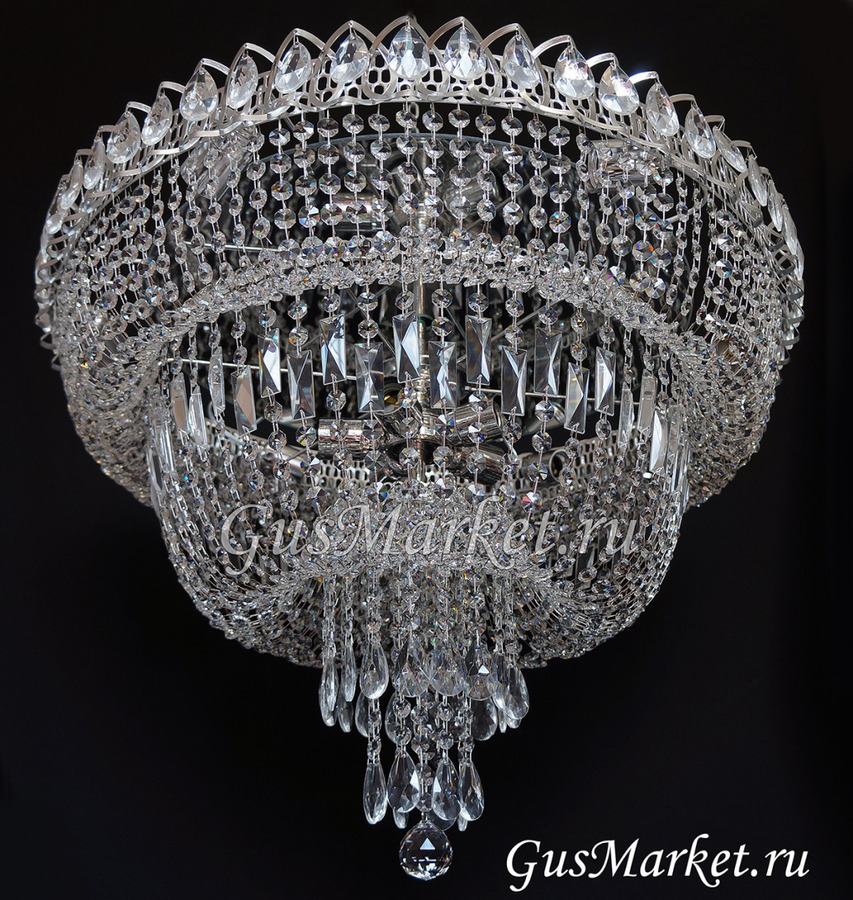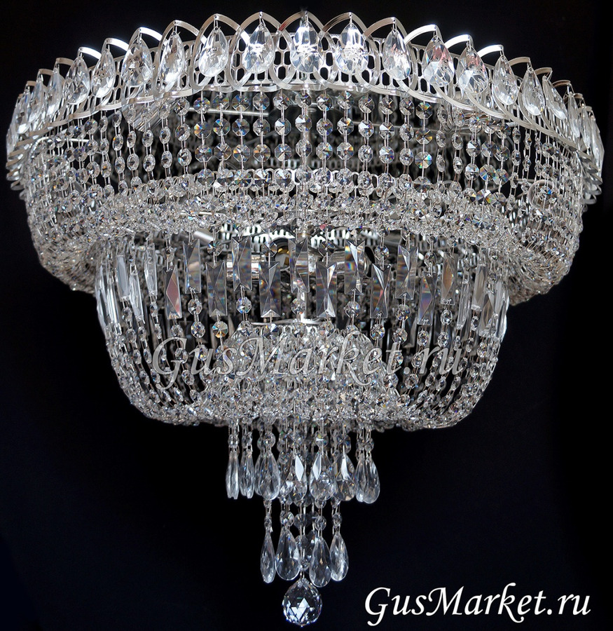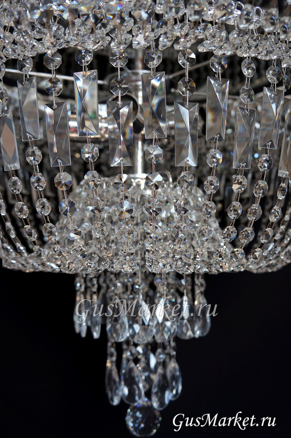 Люстра г.Гусь-Хрустальный. Поставляется в собранном виде, крепление крючковое. Люстра с зеркалом. От обычного "водопада" отличается увеличенной высотой.