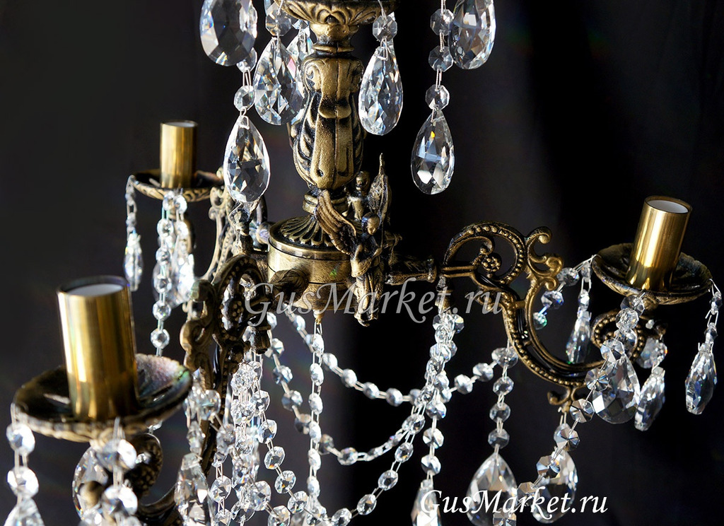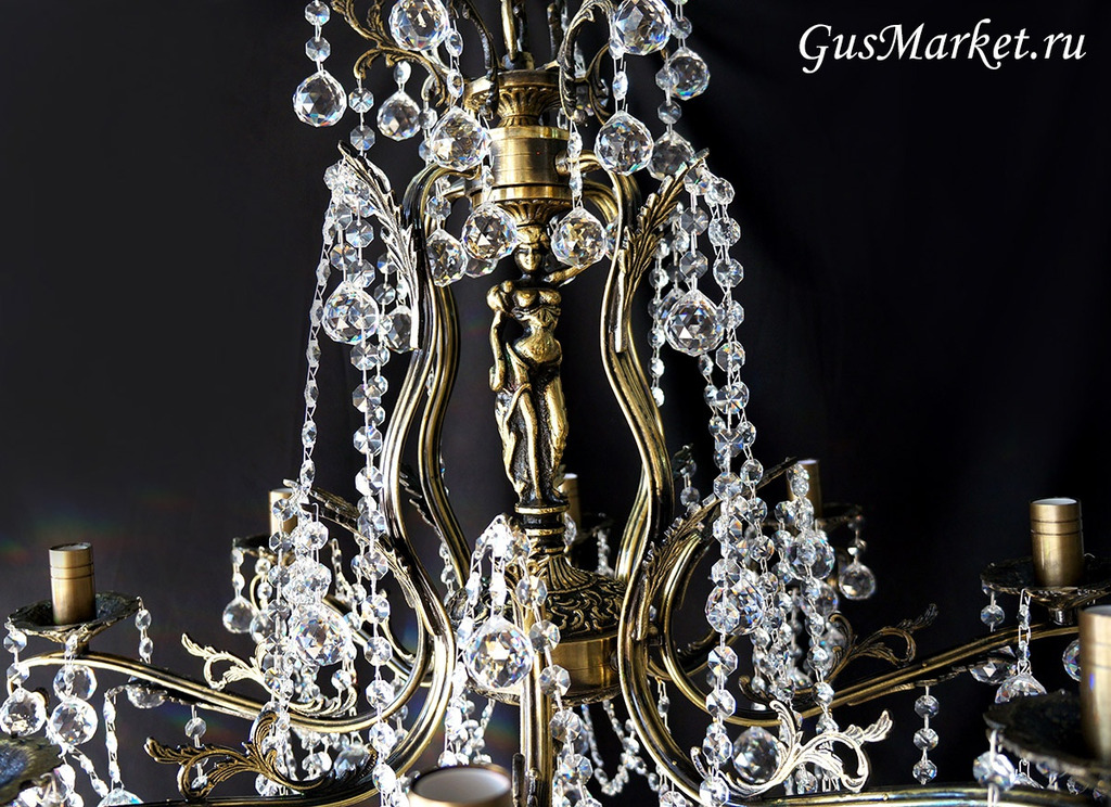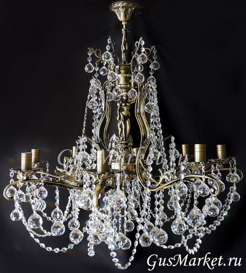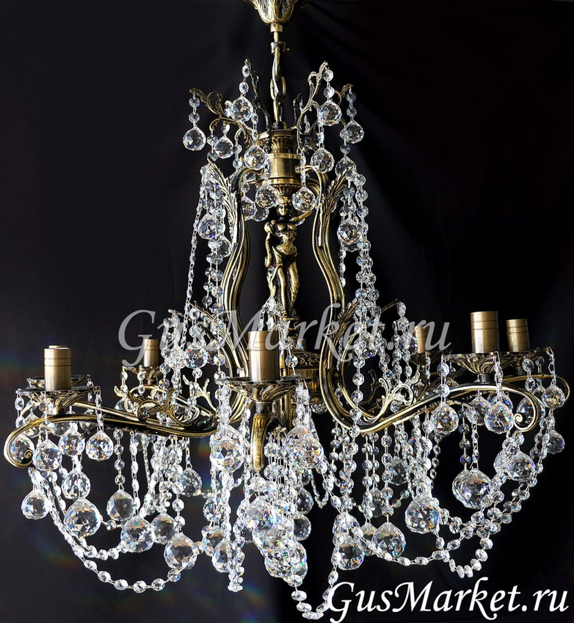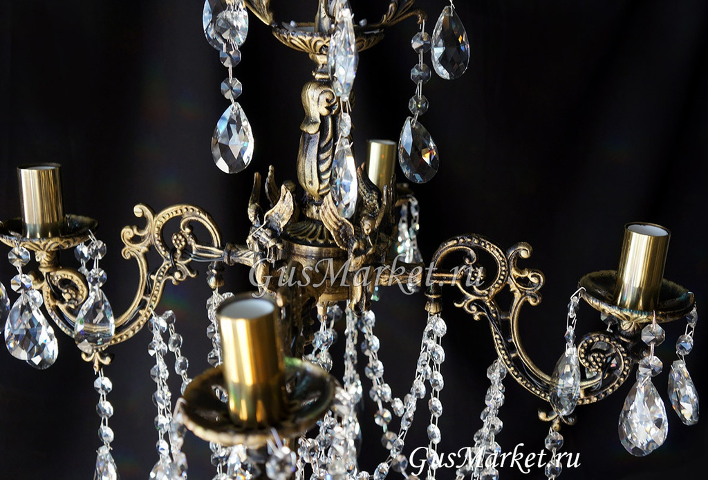 Люстра бронза и хрусталь. г.Гусь-Хрустальный. Поставляется в собранном виде. Люстра дополнительно украшена фигурками.