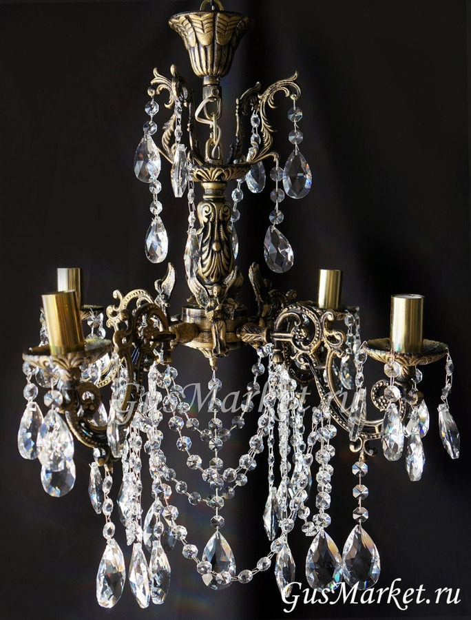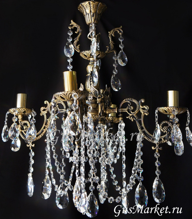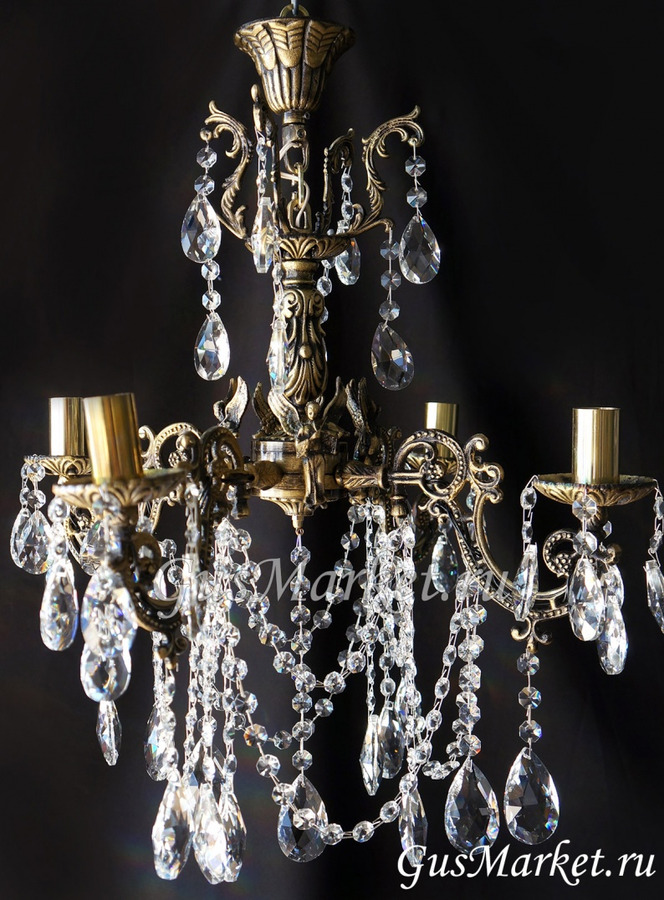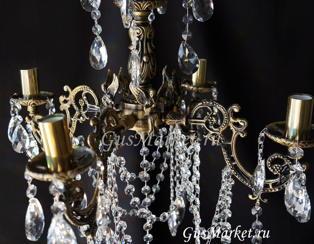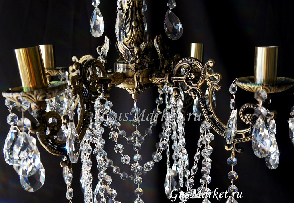 Люстра бронза и хрусталь. г.Гусь-Хрустальный. Поставляется в собранном виде. Люстра дополнительно украшена фигурками.