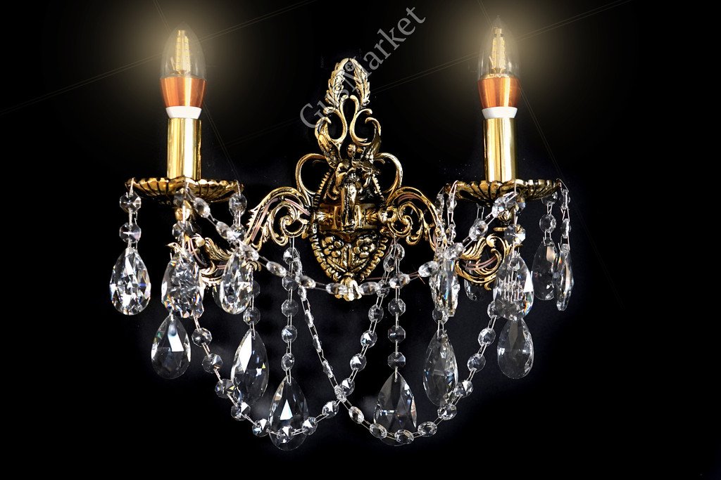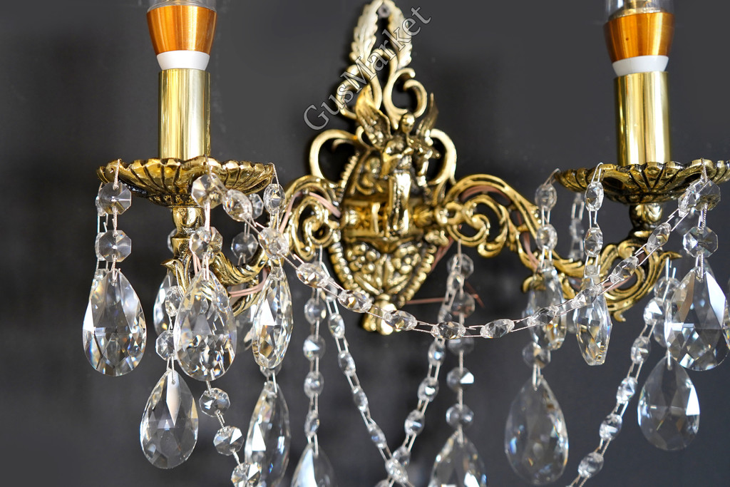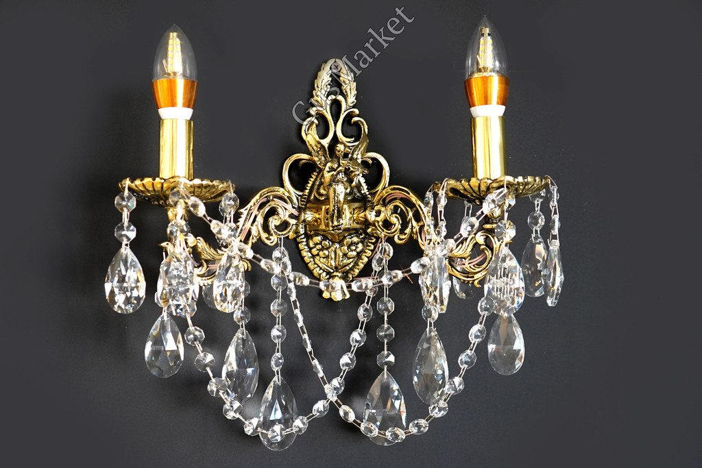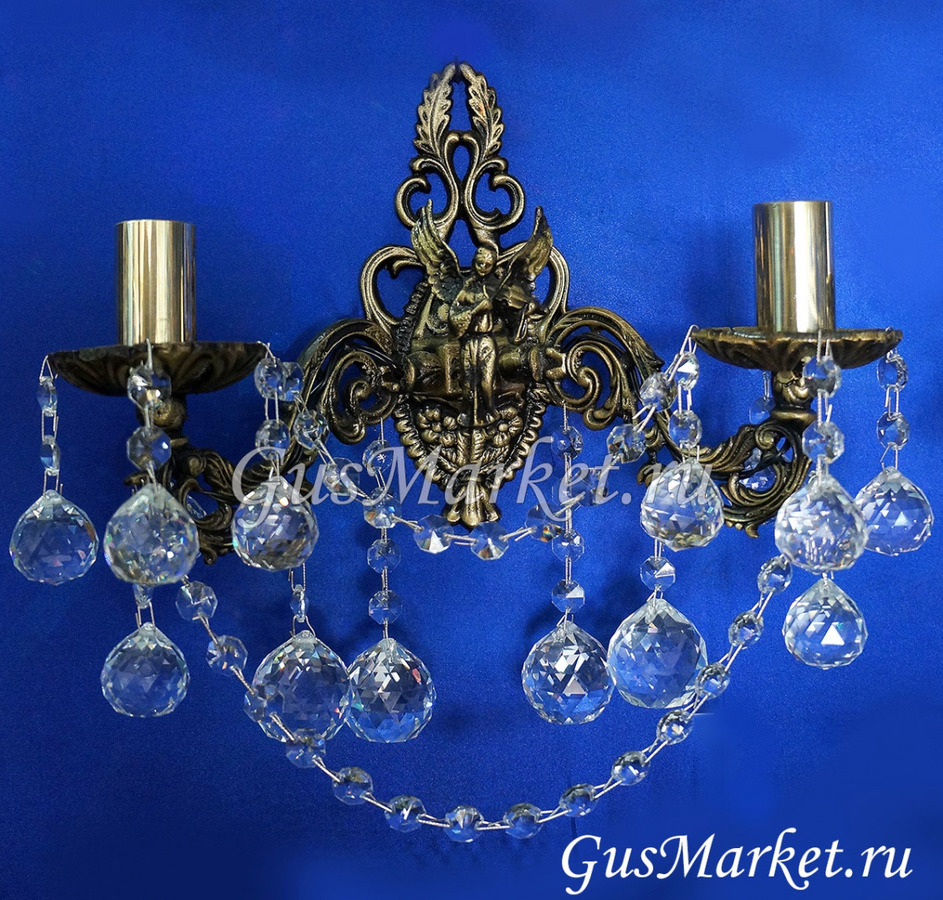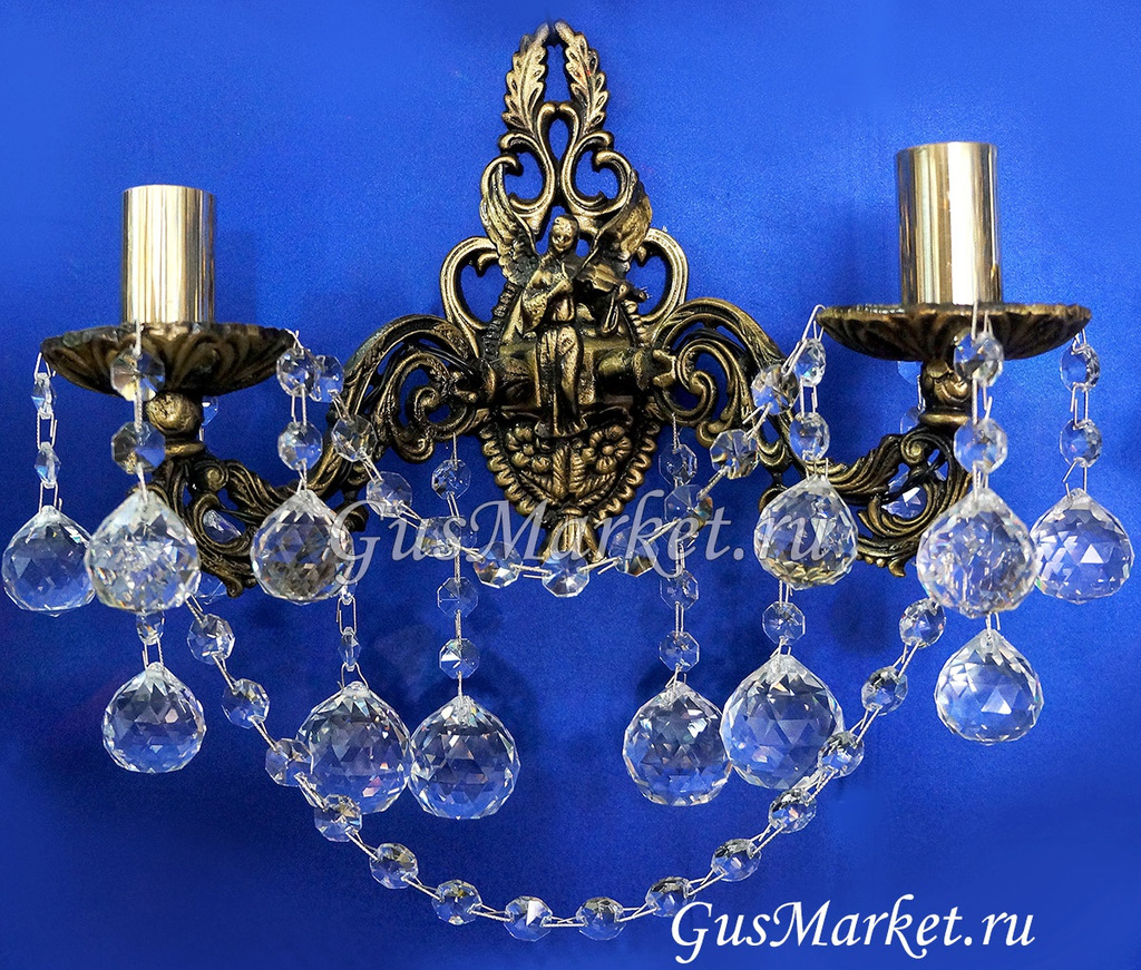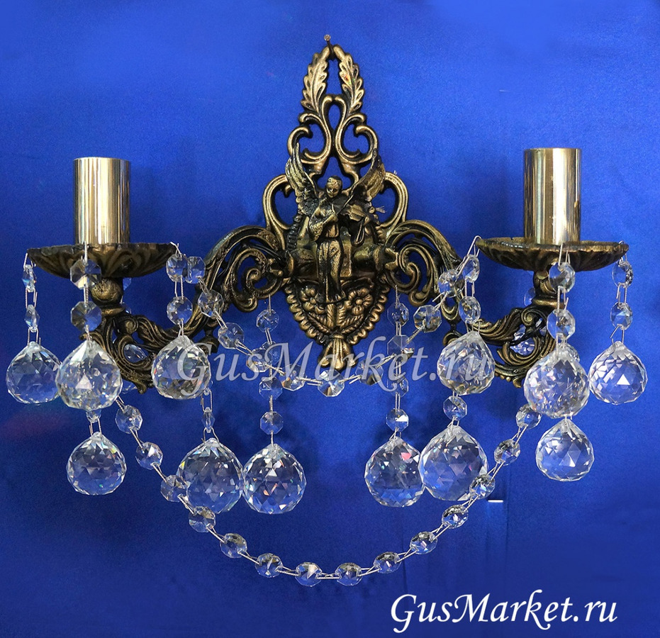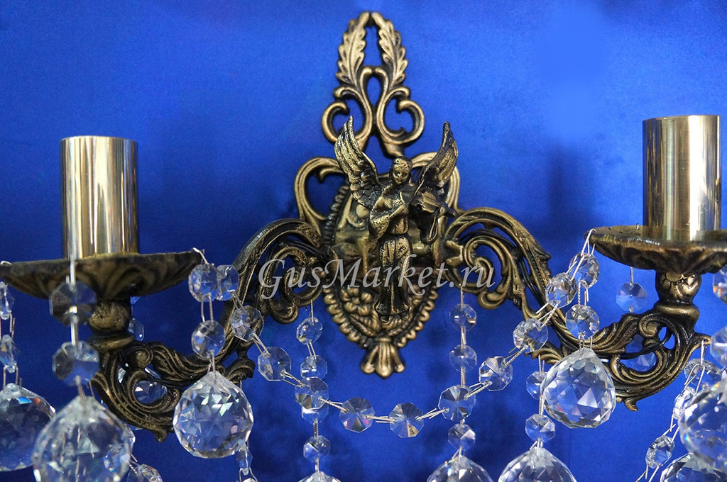 Бра украшено ангелом. Материал бронза и хрусталь. С фигуркой Ангела идет только бра на два рожка. Однорожковый и трехрожковый - без фигурки.