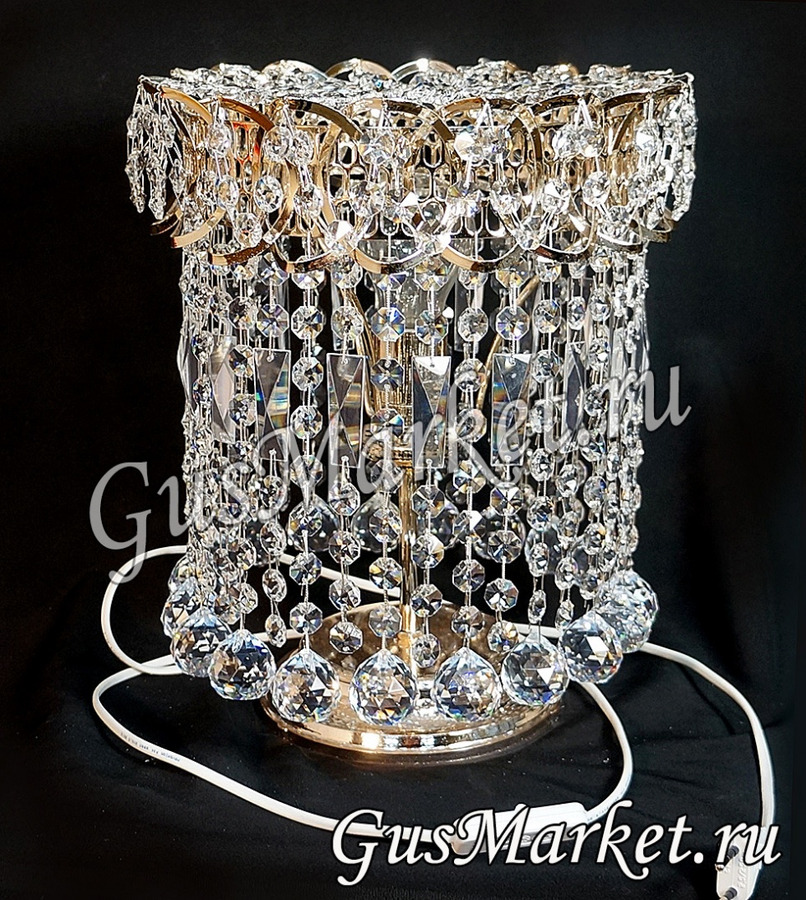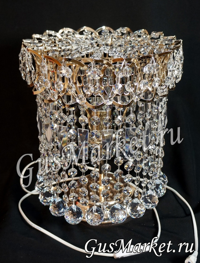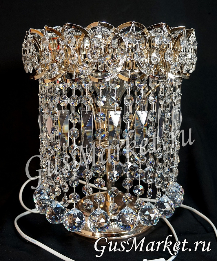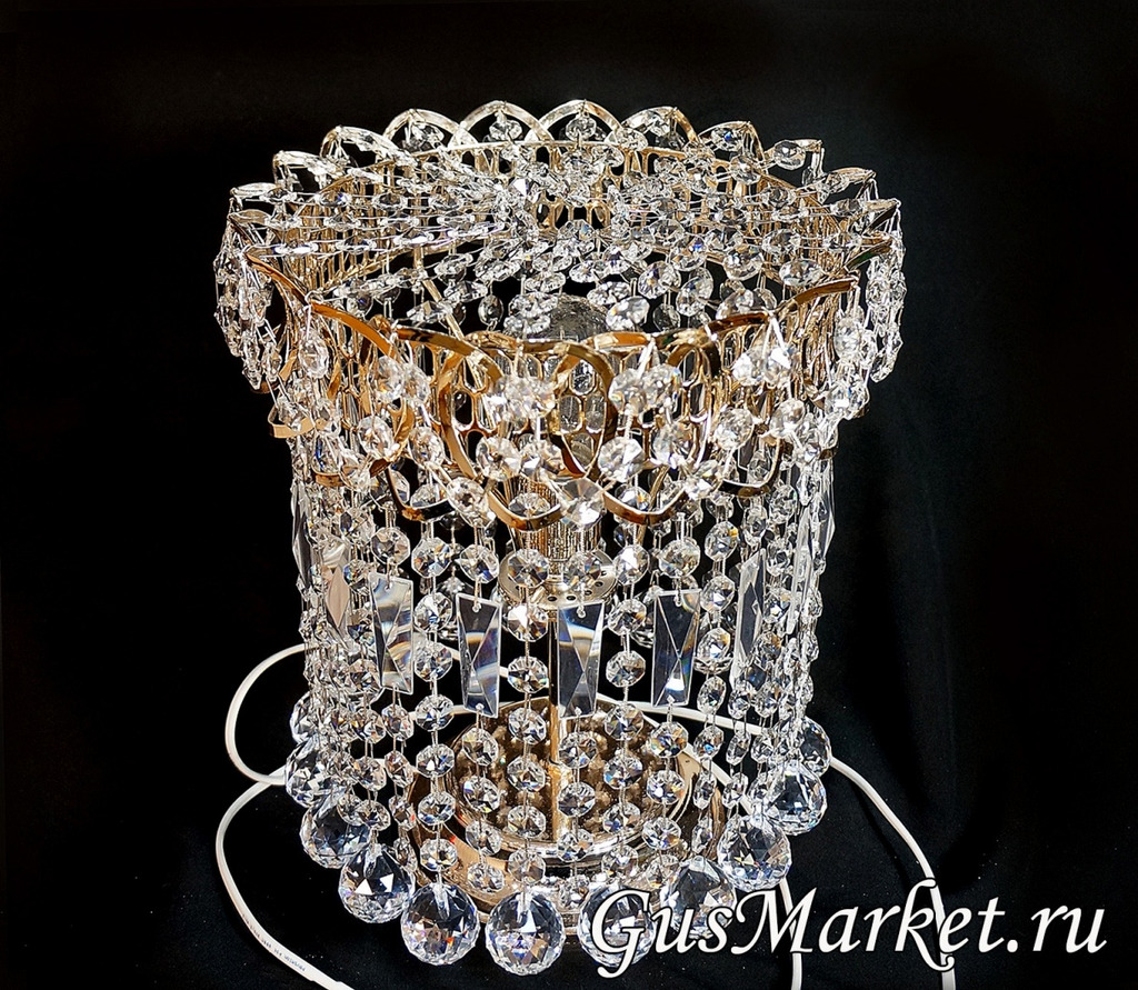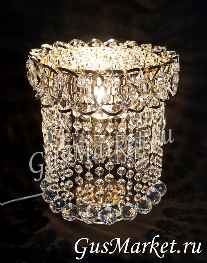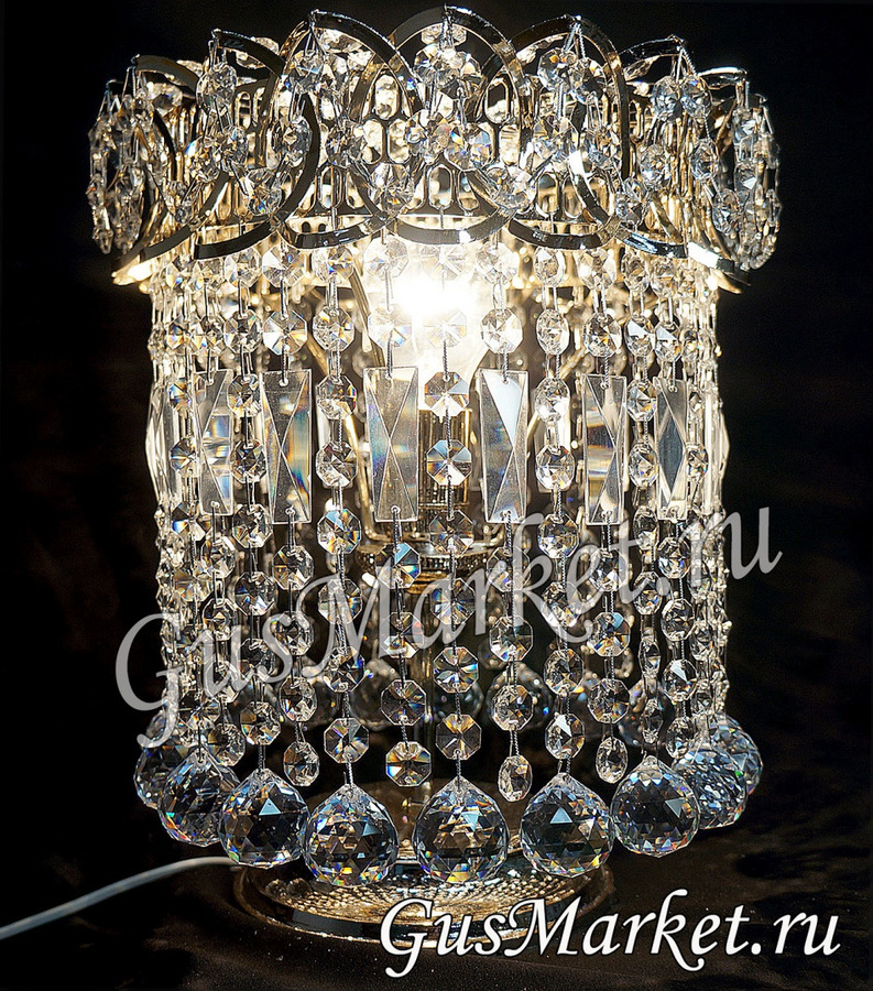 Лампа оказалась замечательная. Повторюсь в след за многими отзывами: в жизни она намного красивее, чем на картинке. Достаточно крупная по размерам и даже массивная, две лампы хорошо вписались в спальню в деревянном доме, отделанную вагонкой - я очень боялась, что хрусталь будет тут не "в стиль", но этого не случилось.