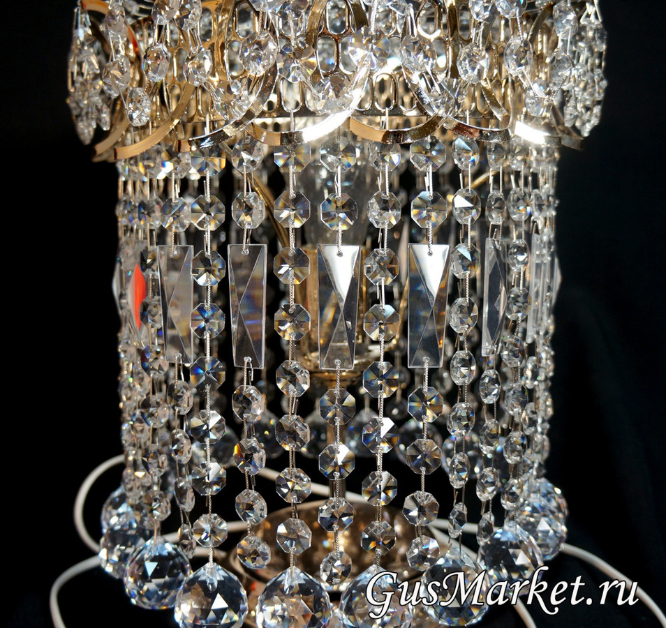 Подвески поблескивают вполне деликатно; нет яркого переливающегося блеска, который оставляет всегда некоторое впечатление вульгарности. И тем не менее на лампу приятно смотреть после трудового дня: вспыхивающие искорки в разных местах создают умиротворяющее впечатление.