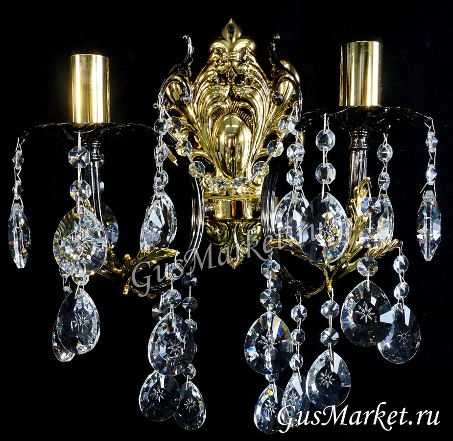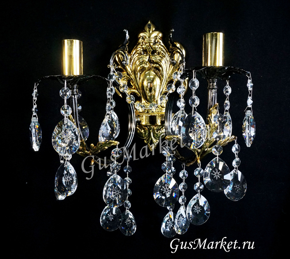 Бра Бронза. В стиле "петровских" времен, сочетание золота и платины. Возможно добавление цветных хрусталиков и подвески на ваш вкус, обычно подбирается под интерьер и люстру.