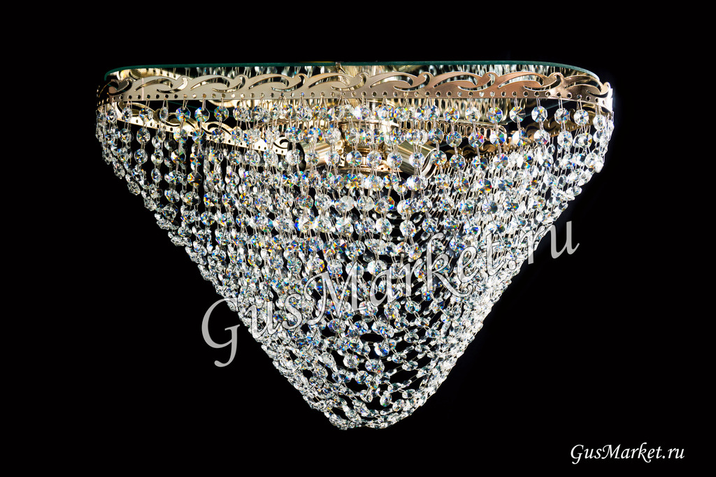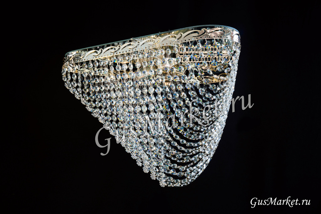 Люстра с зеркалом, производство г. Гусь-Хрустальный. Люстра имеет форму треугольника. Зеркало придает дополнительную игристость хрусталю и делает комнату светлей. Поставляется в собранном виде, крепление крючковое.