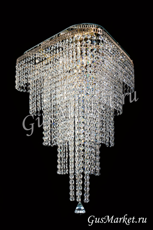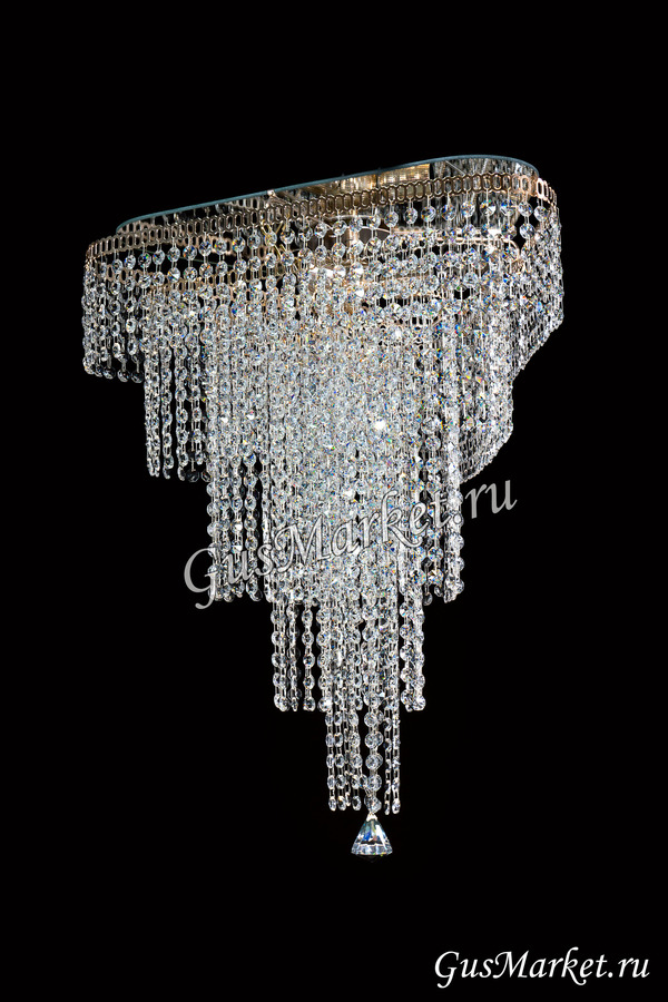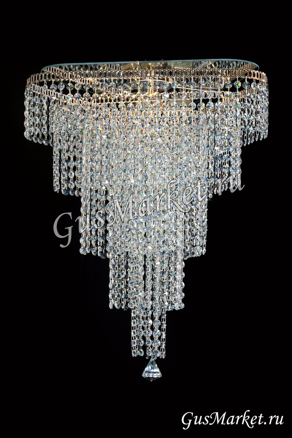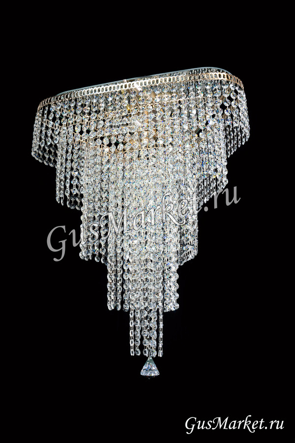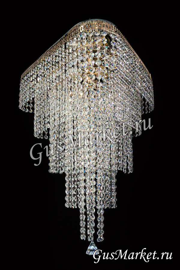 Люстра с зеркалом, производство г. Гусь-Хрустальный. Люстра имеет форму треугольника. Зеркало придает дополнительную игристость хрусталю и делает комнату светлей. Поставляется в собранном виде, крепление крючковое. Высоту можно сделать под заказ клиента.