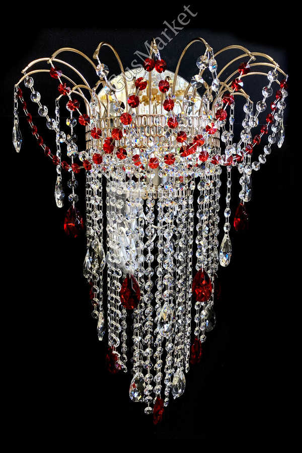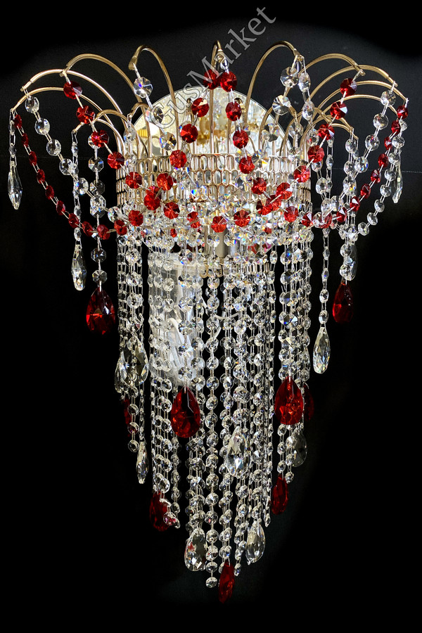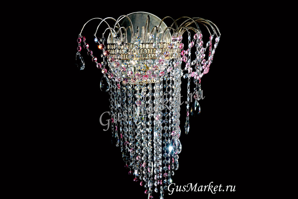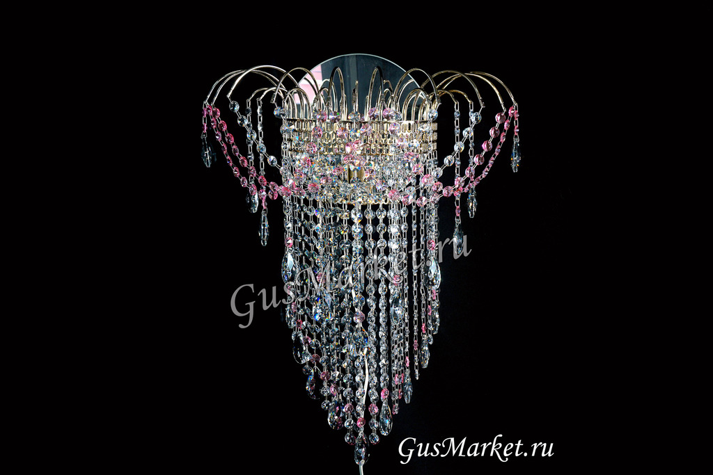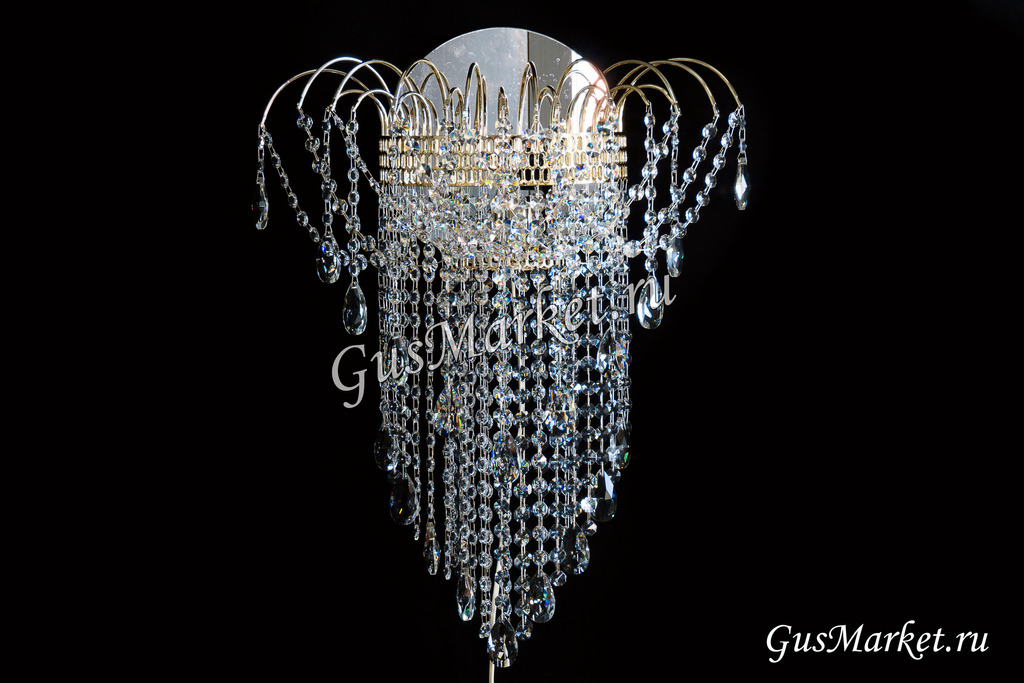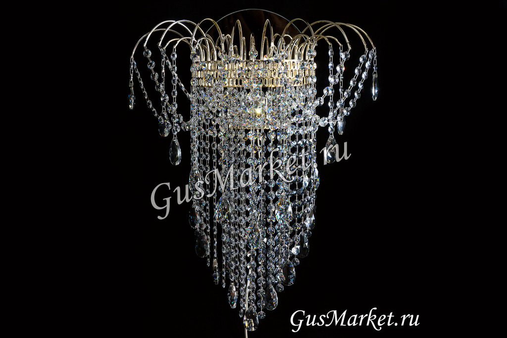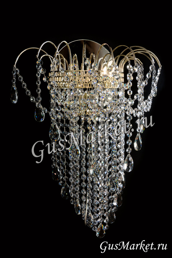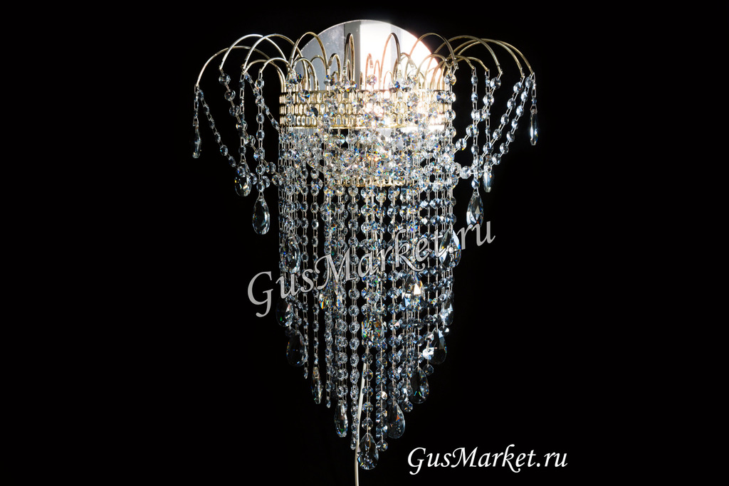 Хрустальный бра. Производство Гусь-Хрустальный. Включатель на проводе. Крепление на двух саморезах (за зеркалом). Высоту бра, можно сделать под заказ. Возможно добавление цветного камня. Лампочка направлена вверх.