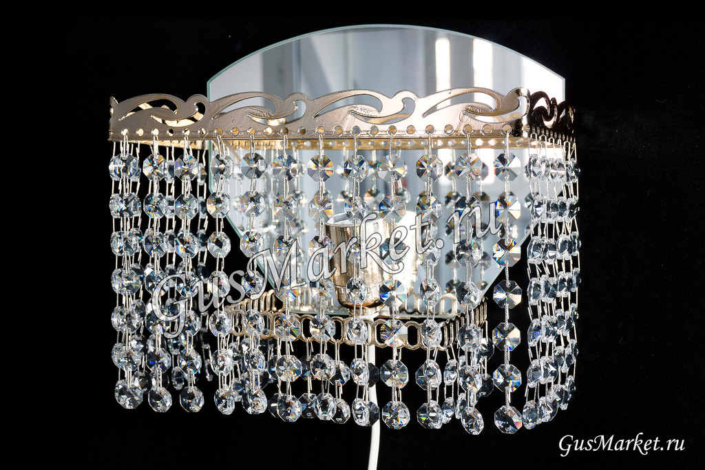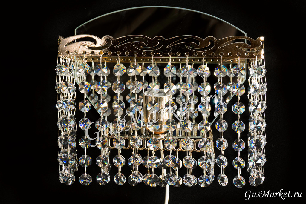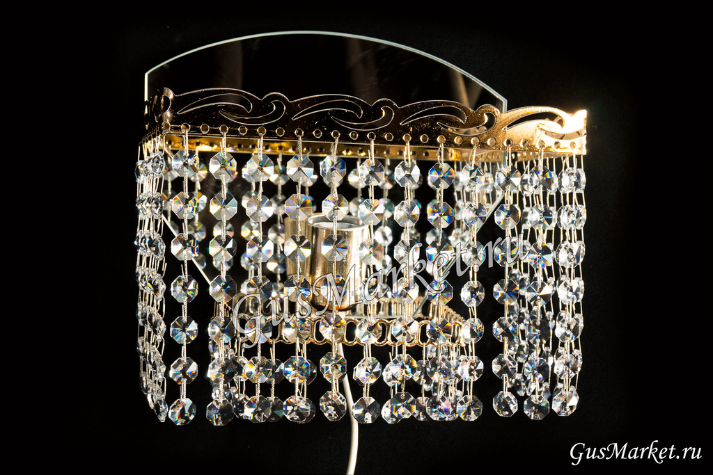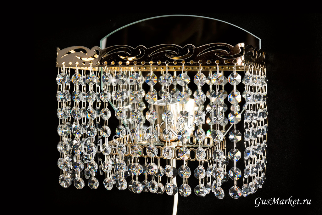 Хрустальный бра. Производство Гусь-Хрустальный. Включатель на проводе. Крепление на двух саморезах (за зеркалом). Возможно добавление цветного камня. Лампочка направлена вверх.