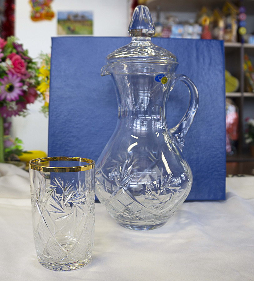Набор из хрусталя. В наборе 7 предметов: кувшин объем 1л + шесть стаканов по 250мл.