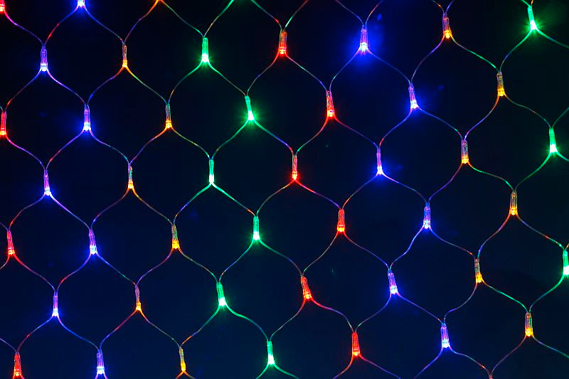 Размер 150х150см. Цветная. Можно соединить в несколько гирлянд. На изделии есть вилка и розетка.