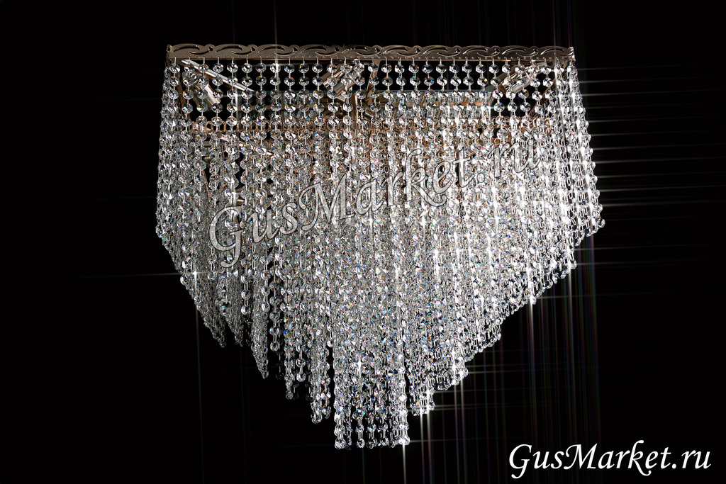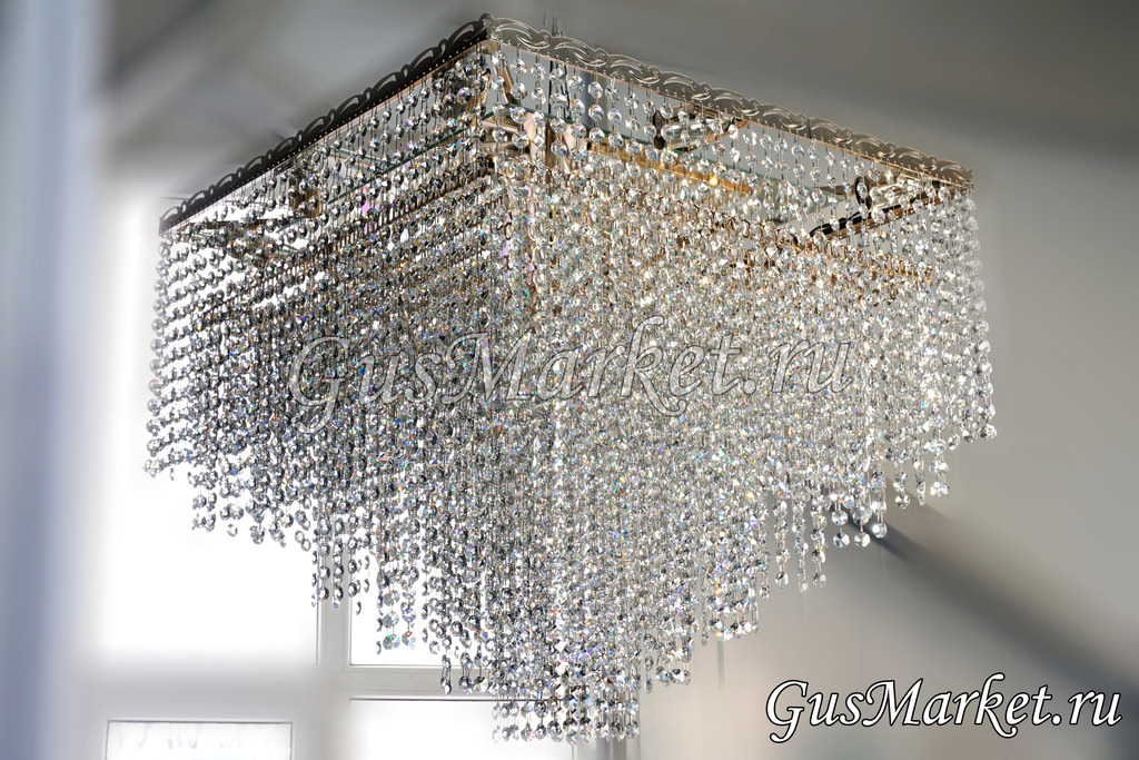 Люстра производства г.Гусь-Хрустальный с зеркалом под основанием. Крепление на крючок. Высоту можно изменять за счет длинны хрустальных цепочек, сделаем под заказ. Для высокого варианта возможно попробовать сборку на кольцах.